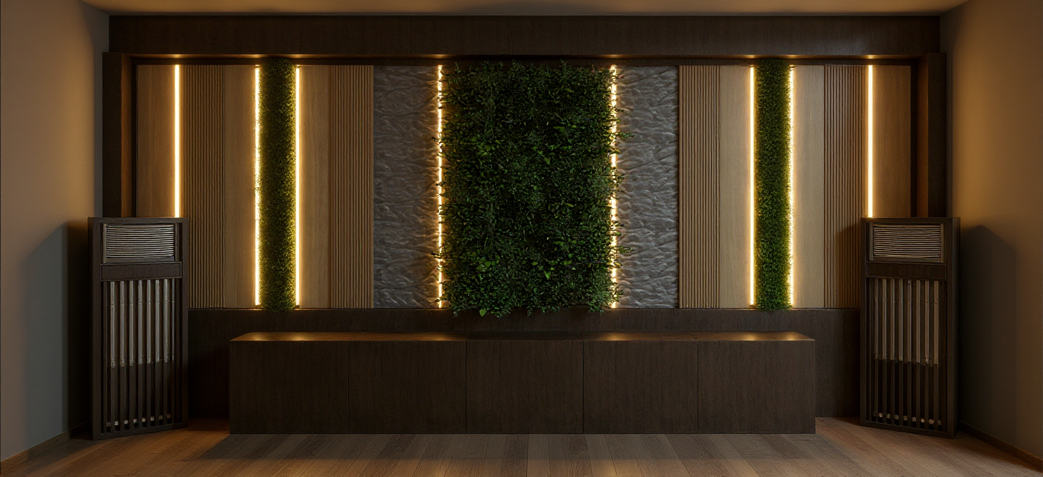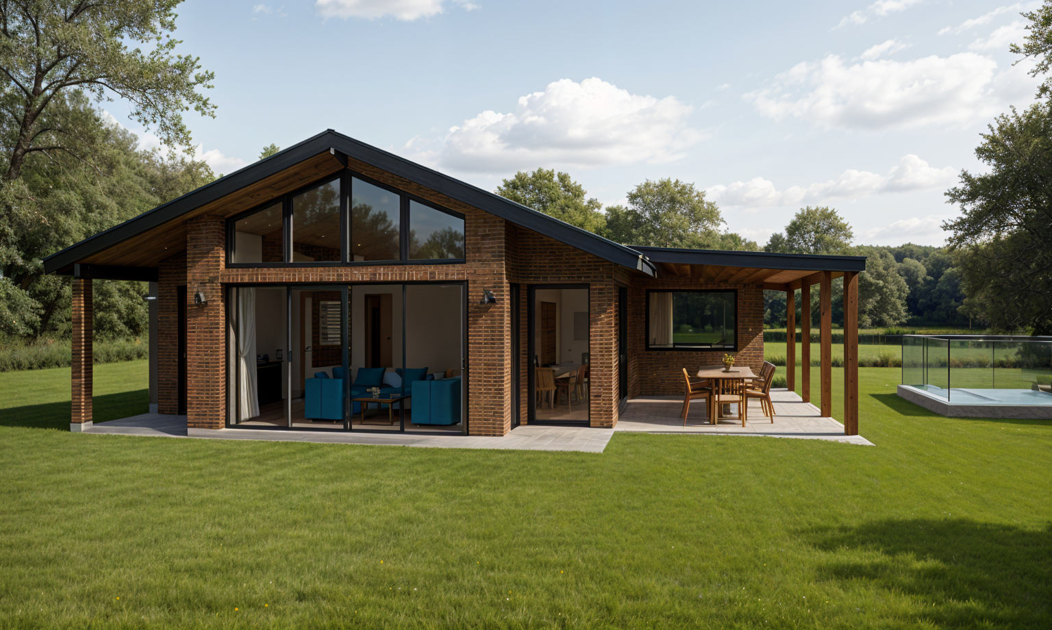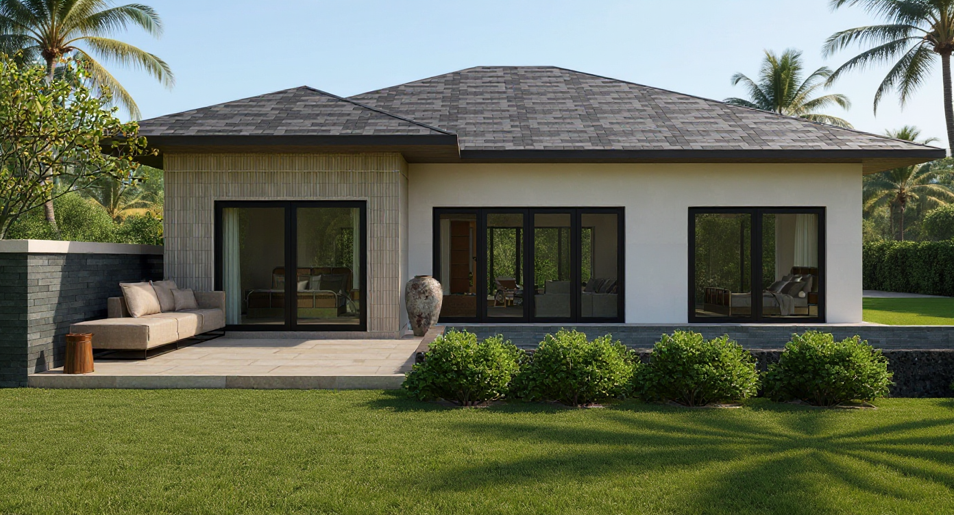 dark grey rendered brick cladding no brick texture trees in the background like ordinary backyard keep colors