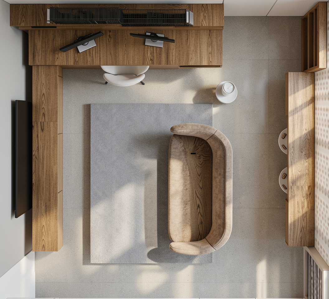 exterior shot render the perspective of a corridor in a care center for elderly so that it has a perforated white ceiling with a light stripe following the corridor length dark grey concrete flooring and wooden doors the view from the windows should show the garmisch partenkirchen valley with an alp panorama
