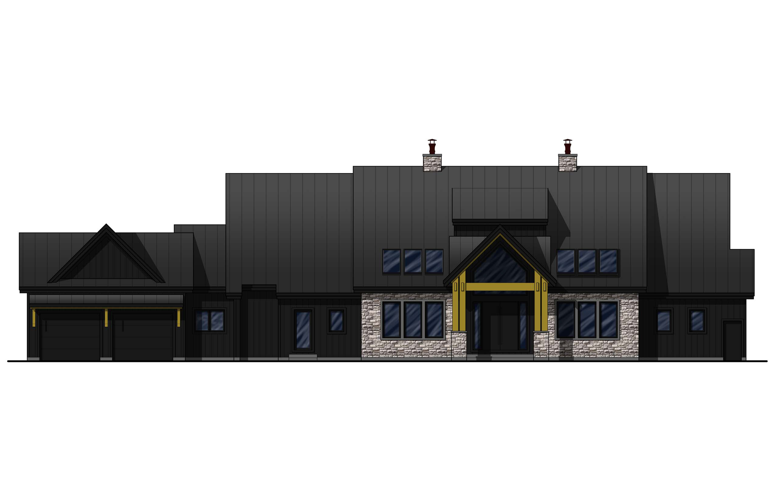 render a photorealistic 3d perspective of this house reference the current material style just enhance them keep model geometry the same windows doors roof walls garage door pavement driveway make a lush vegetation that looks native to a wooded lot do not change the view only enhance the current materials and make the landscape nicer vegetation detailed textures in the wood siding and glass reflections and a vibrant clear sky with light atmospheric depth render in hyper realistic architectural visualization quality 8k resolution