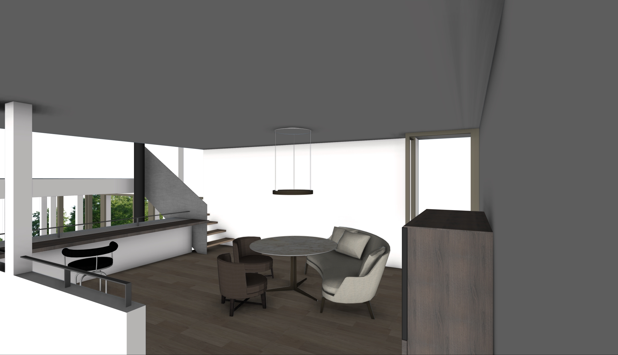 realistic interior shot natural warm daylight garden as background