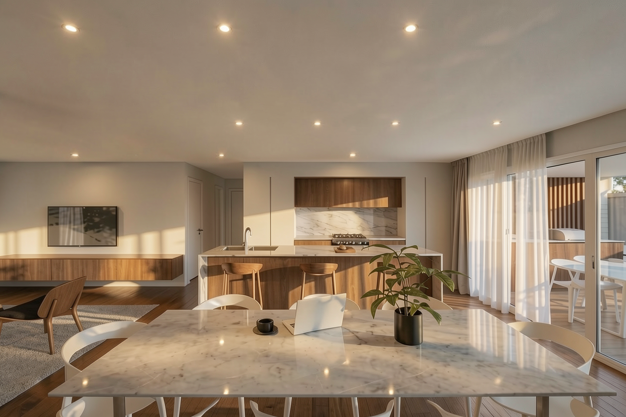 add modern pendant lights over the kitchen bench