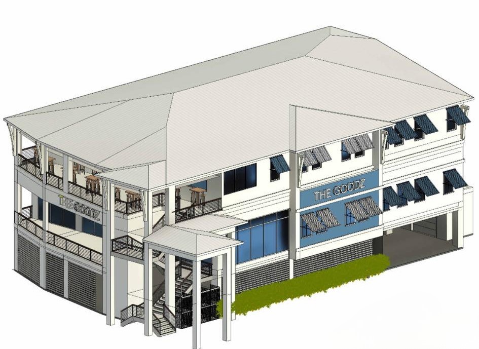 make in a florida setting have building on a corner lot with sidewalks