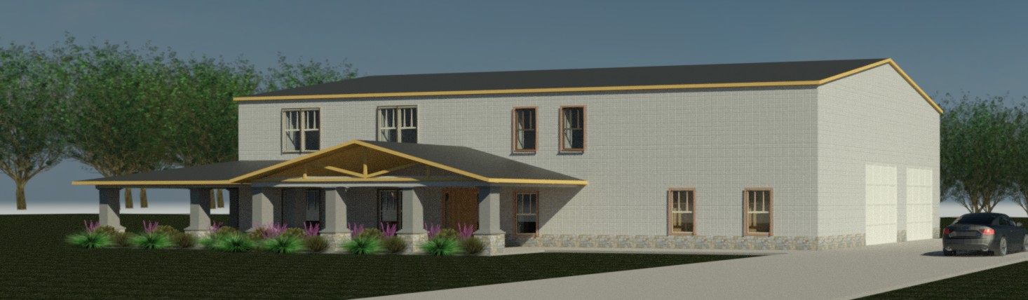 this is a modern farmhouse it has white board and batten siding the foundation is made of brown brick the roof is a gray standing seam metal this house is in the middle of nice field with clear skies