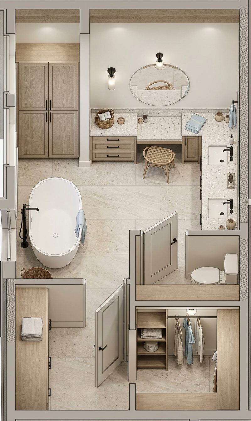 do not change the cabinets in any way preserve the exact cabinet colors materials finishes dimensions door and drawer styles hardware spacing alignment and all geometry exactly as shown do not alter the countertop shape backsplash appliances flooring lighting fixtures or wall structure only remove the construction materials clutter and mess from the scene clean the room and make it look finished and staged add a few simple tasteful home accessories appropriate for the style of the space but do not add or remove any furniture windows or architectural elements maintain the original lighting direction and realism enhance clarity and polish the photo while keeping the cabinetry and room design completely unchanged do not alter the lighting to keep the cabinet colors as they are in the image change the ceiling to be drywall restage the inside of the cabinet with organized and neat office supplies
