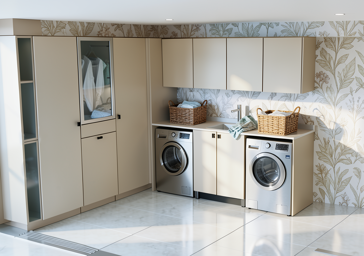 cambiar todas las paredes a un papel que se utilice en cuarto de lavado a rayas combinado rayas blancas y azules