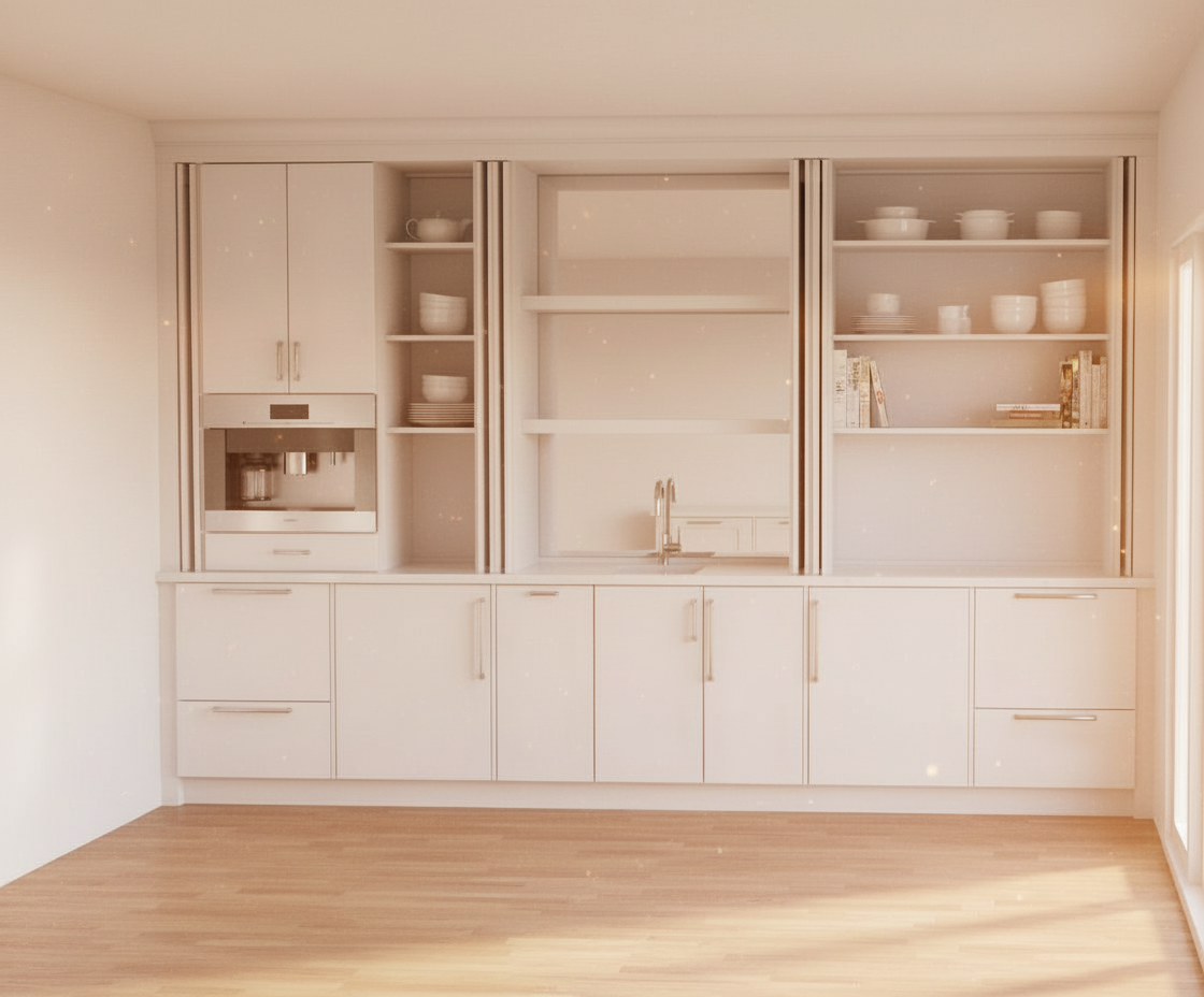 transform into a high end hyper realistic visualisation keep the view the same same walls same window low afternoon sun