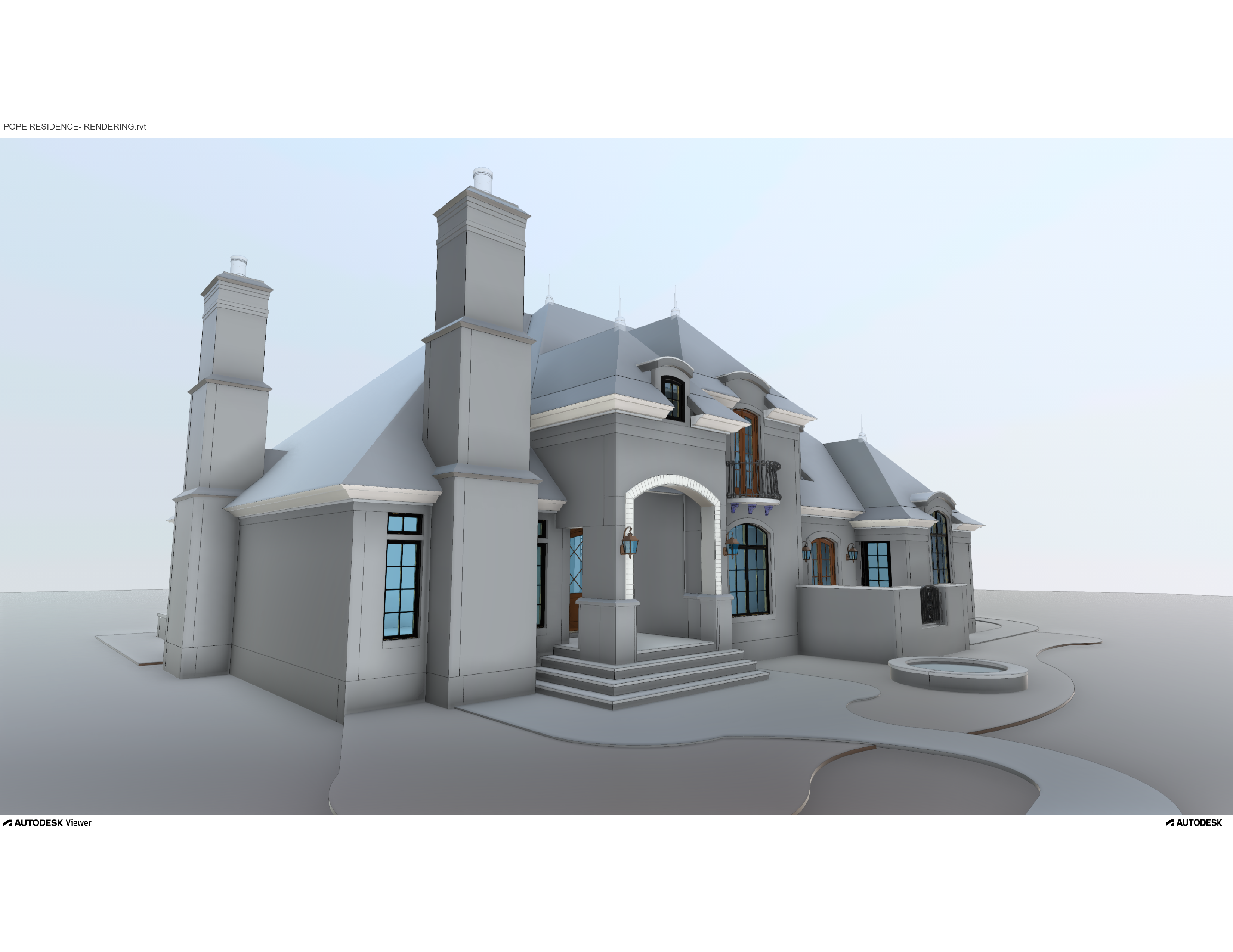 render a two story house with a modern design featuring a light gray stone exterior and a roof in dark grey slate the windows are accented with black frames and the glass reflects the gentle light the doors are painted in a warm oak color adding contrast create a serene evening atmosphere with a dim golden glow emanating from the windows suggesting a cozy interior surround the house in a subtle natural landscape under a pastel sky transitioning from soft pink to light blue evoking a tranquil dusk setting