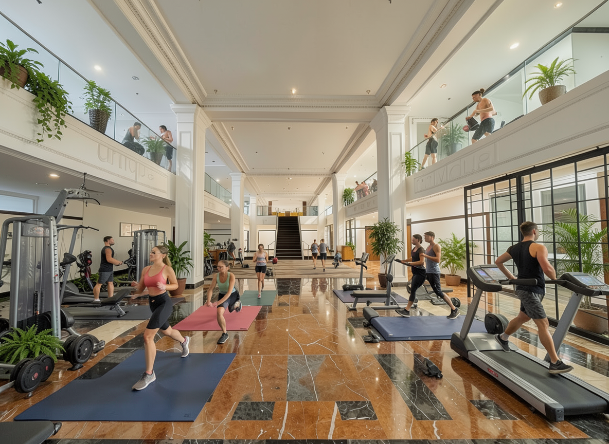 make this a gym with people working out