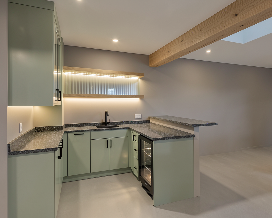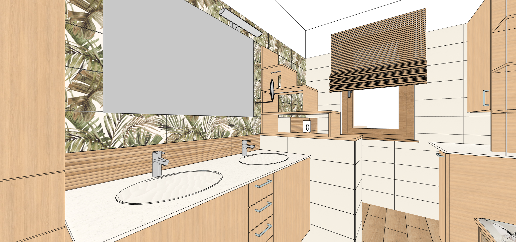 using this bathroom 3 dd sketch make a mood board for a the entire flat