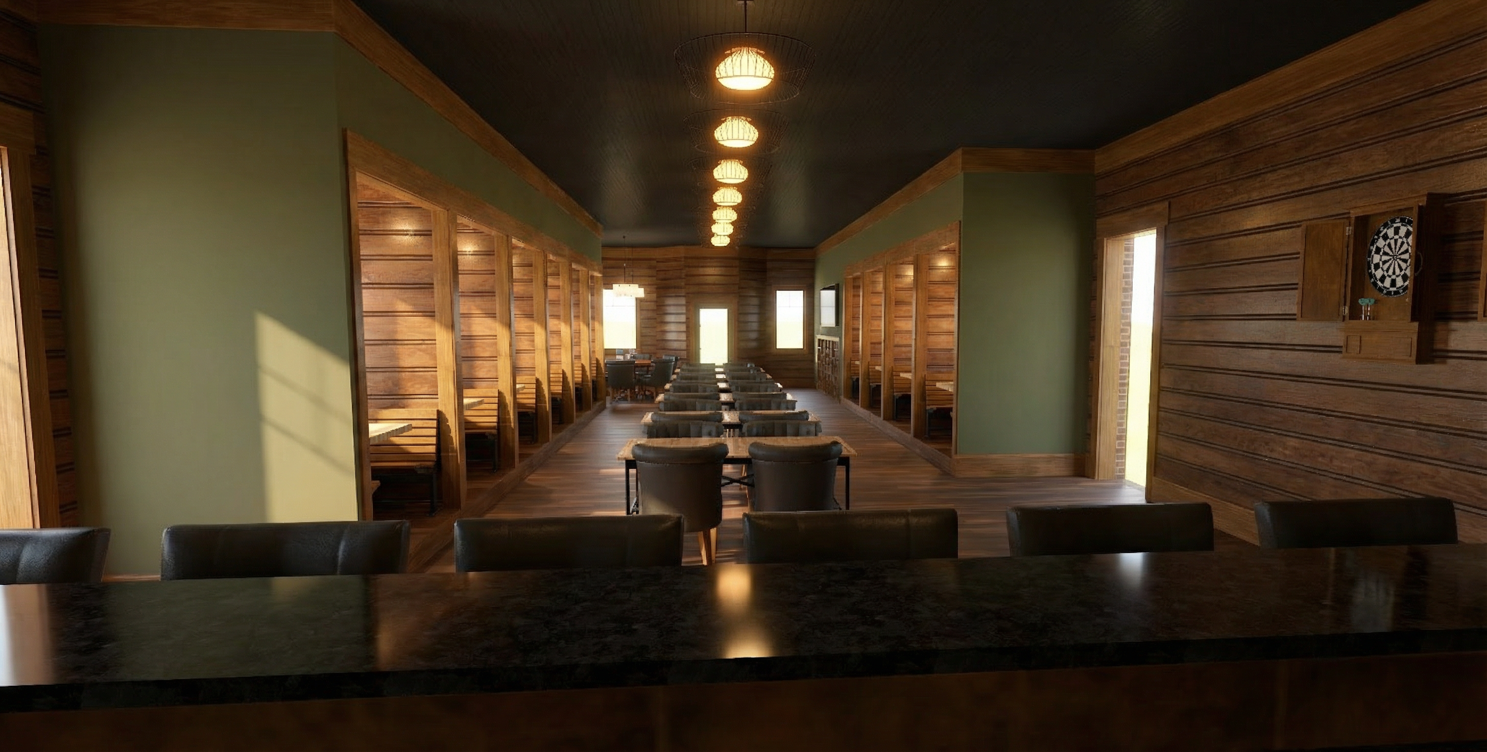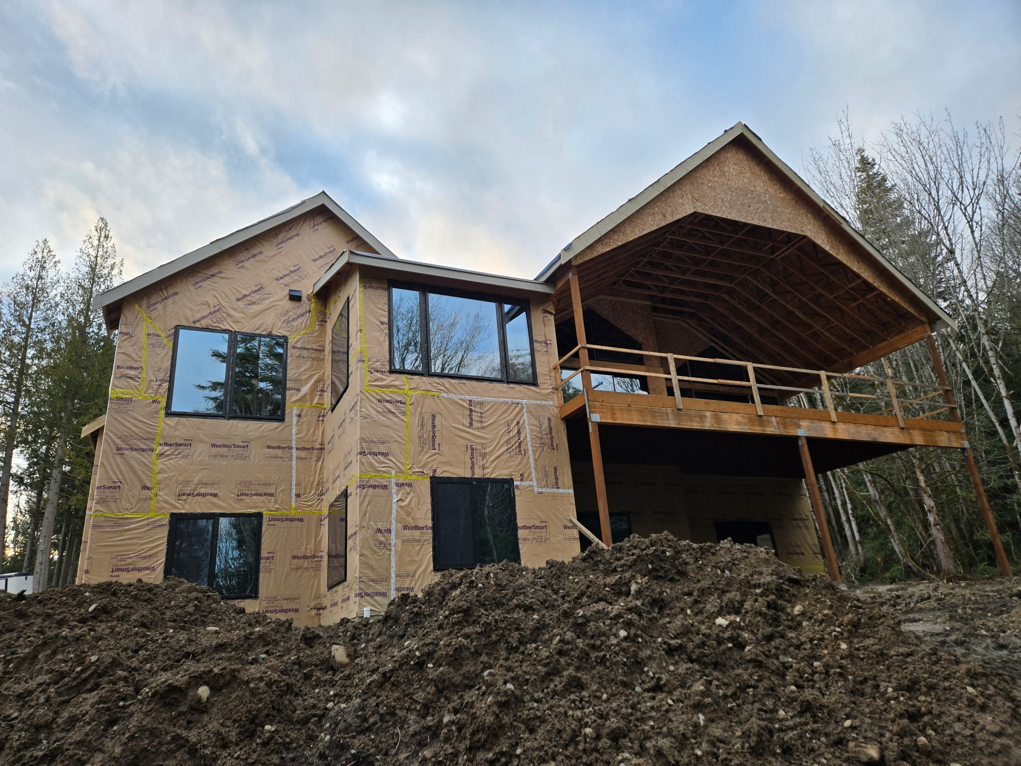 needs stonework siding paneling complete the deck with stone on the poles simple landscaping this is the back elevation