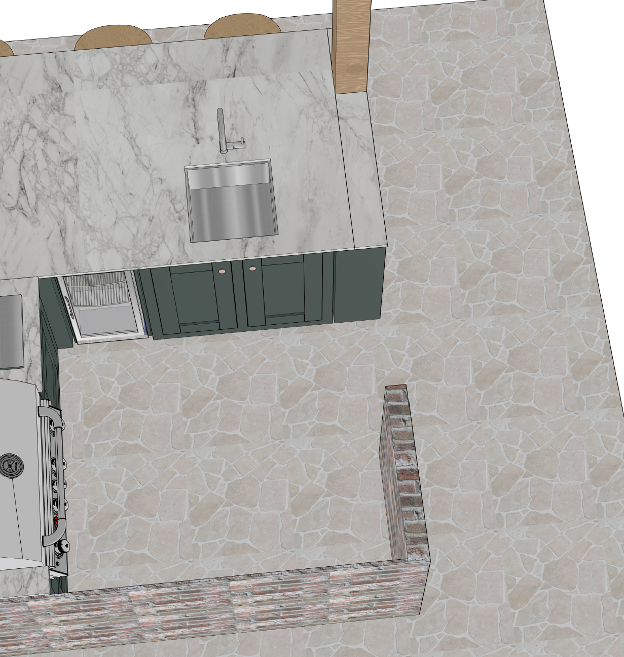 remove the wood effect from the cabinets and instead have a powder coated texture the colour of the cabinets needs to be neptune charcoal can there be patio to the right hand side of the view