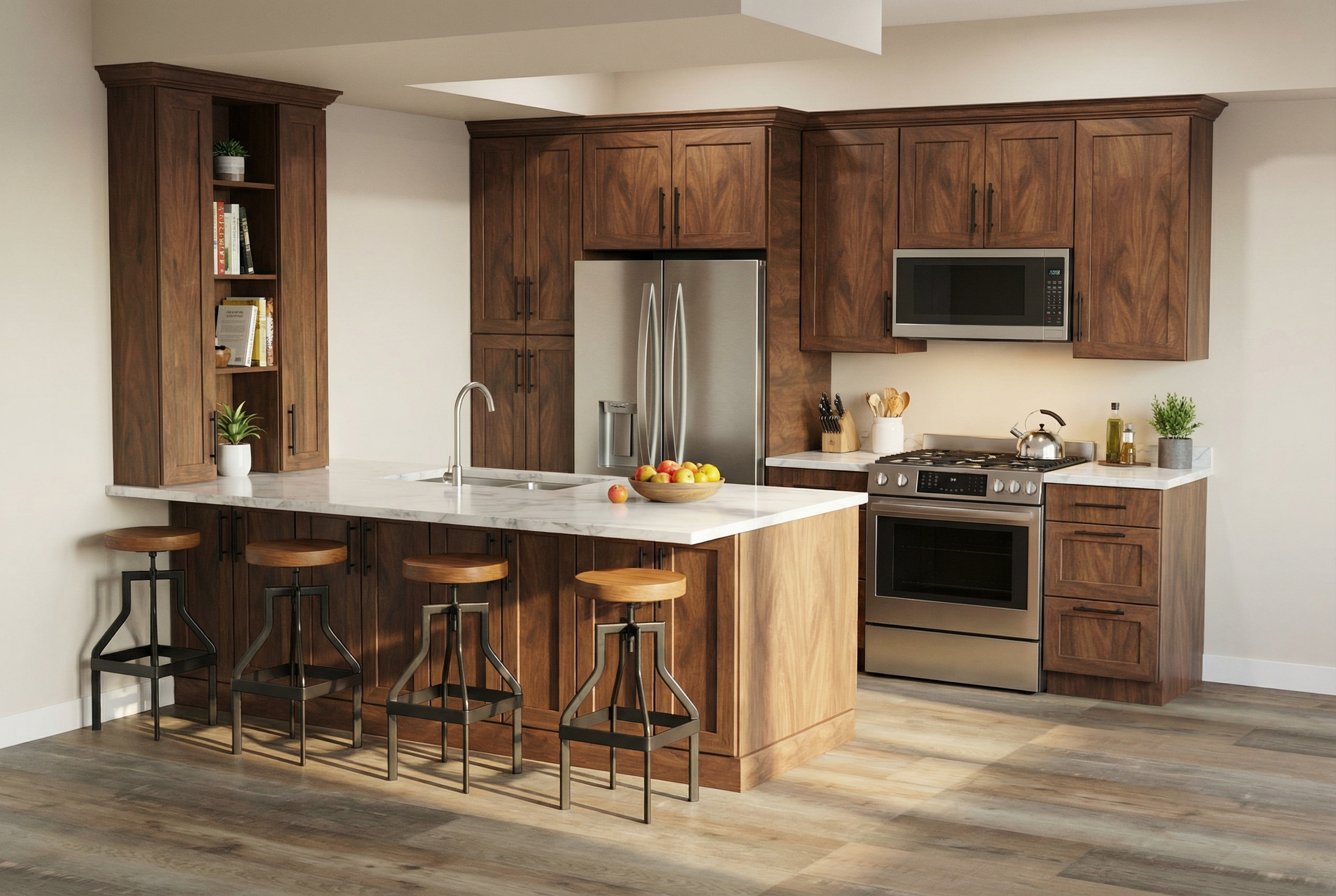 stage this like a modern cafe add limited seating in the frame