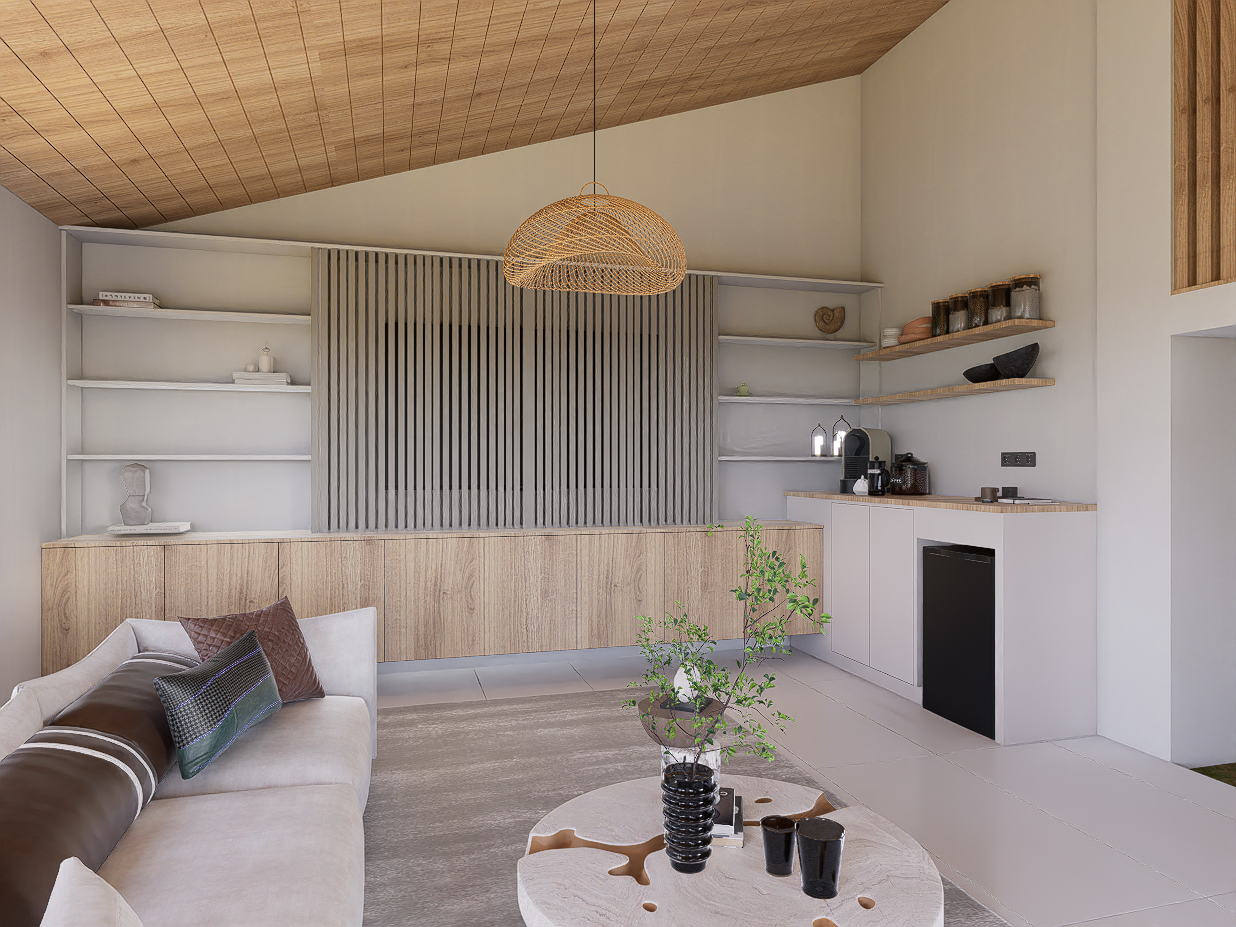 photorealistic interior render contemporary living room large floor to ceiling glass window breathtaking natural landscape outside lush green forest distant mountains soft atmospheric fog warm sunset golden hour light physically accurate lighting global illumination ray tracing reflections ultra detailed textures cinematic framing volumetric lighting rays entering through window realistic shadows hdr 8k resolution architectural visualization unreal engine 5 quality v ray realism sharp focus depth of field hyperrealistic materials magazine quality interior photography