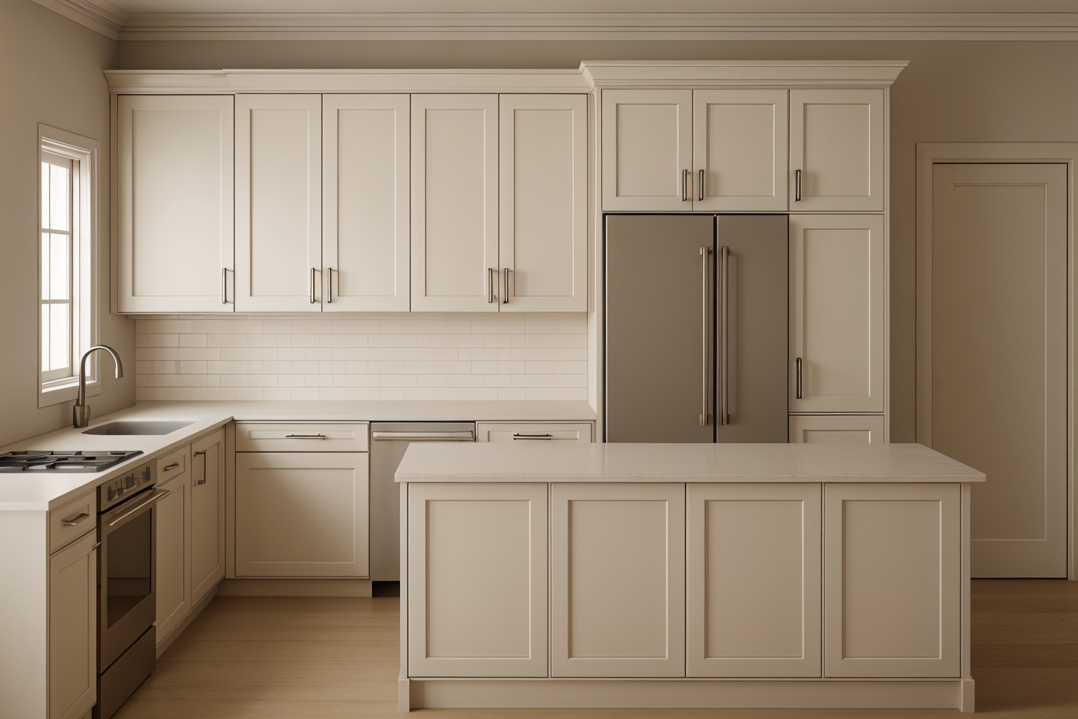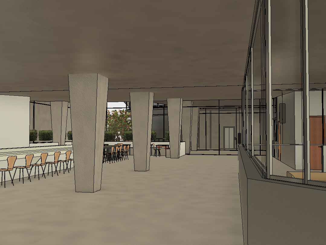 interior shot a spacious modern waiting area with minimalist design the ceiling is a soft taupe providing a warm and inviting atmosphere the walls are a light cream complementing the taupe ceiling the seating consists of sleek angular couches in a light camel brown leather giving a chic contrast floor to ceiling glass walls allow for ample natural light subtly reflecting off the polished concrete floor in a muted sand color potted plants in deep green are scattered throughout adding a touch of nature and vibrancy the background reveals an open door made of light wood enhancing the earthy tones of the space the overall atmosphere is calm modern and inviting with a focus on neutral tones and natural light
