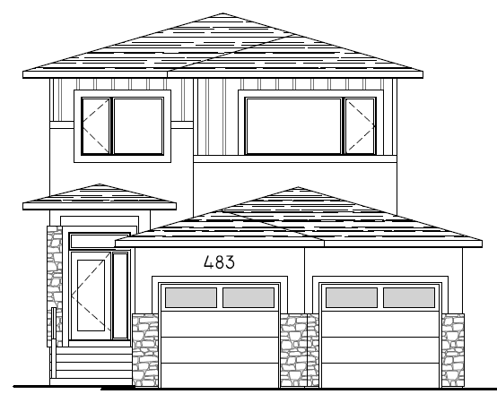front entry door to be black shingles to be black garage doors to be black windows to be black stucco color to be darker shade of white natural stone in complimenting color frotn concrete driveway front yard landscaping with grass and single tree no landscaping on side yards or rear yard