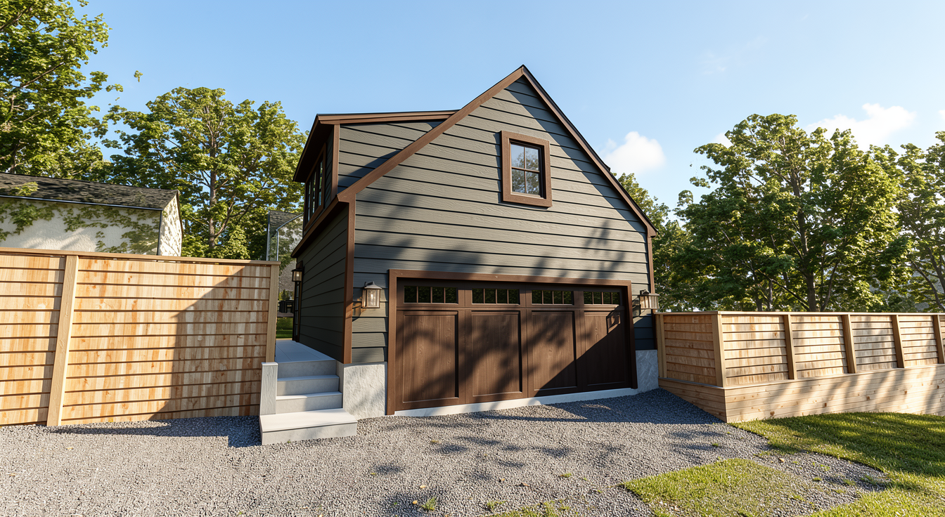 realistic cool siding warm trim light wooden fence sunny day