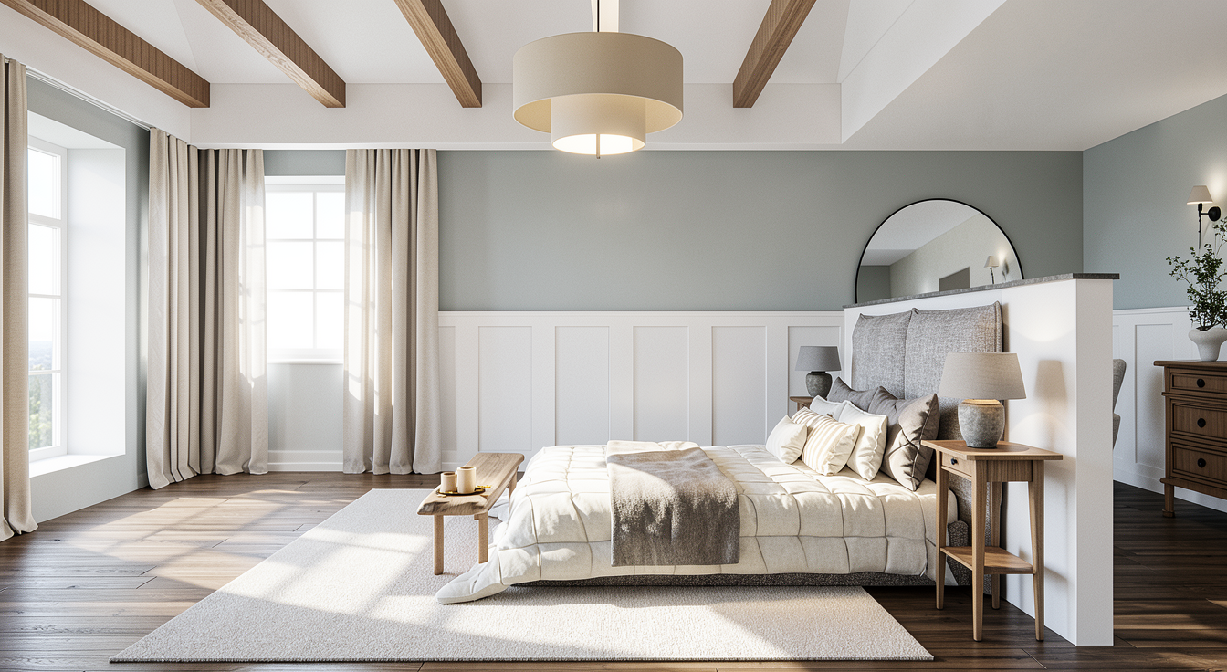 create rendering for family area tv with full height feature wall behind the arm chair there is a staircase to go up