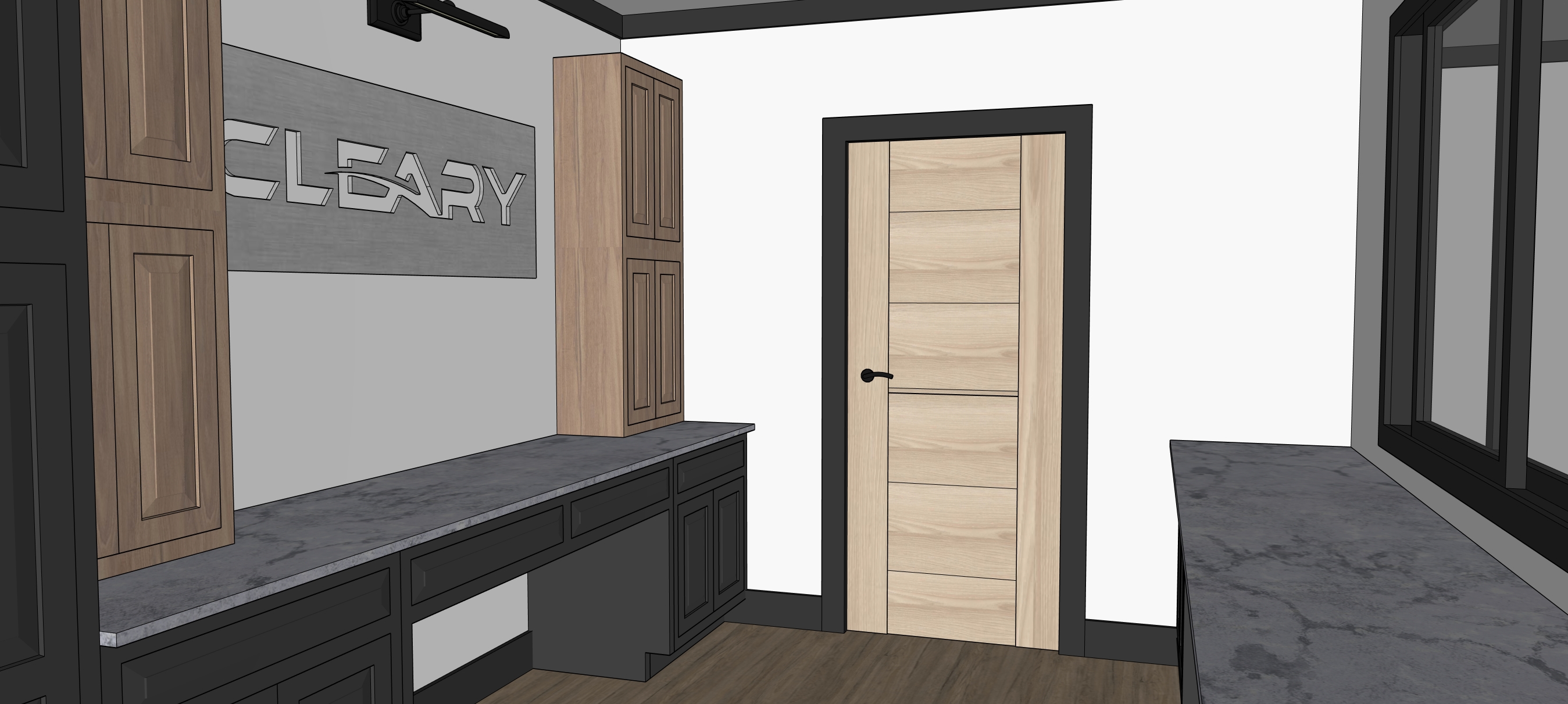 maintain design make realistic add office decor add ceiling can lighting receptionist working on right desk area