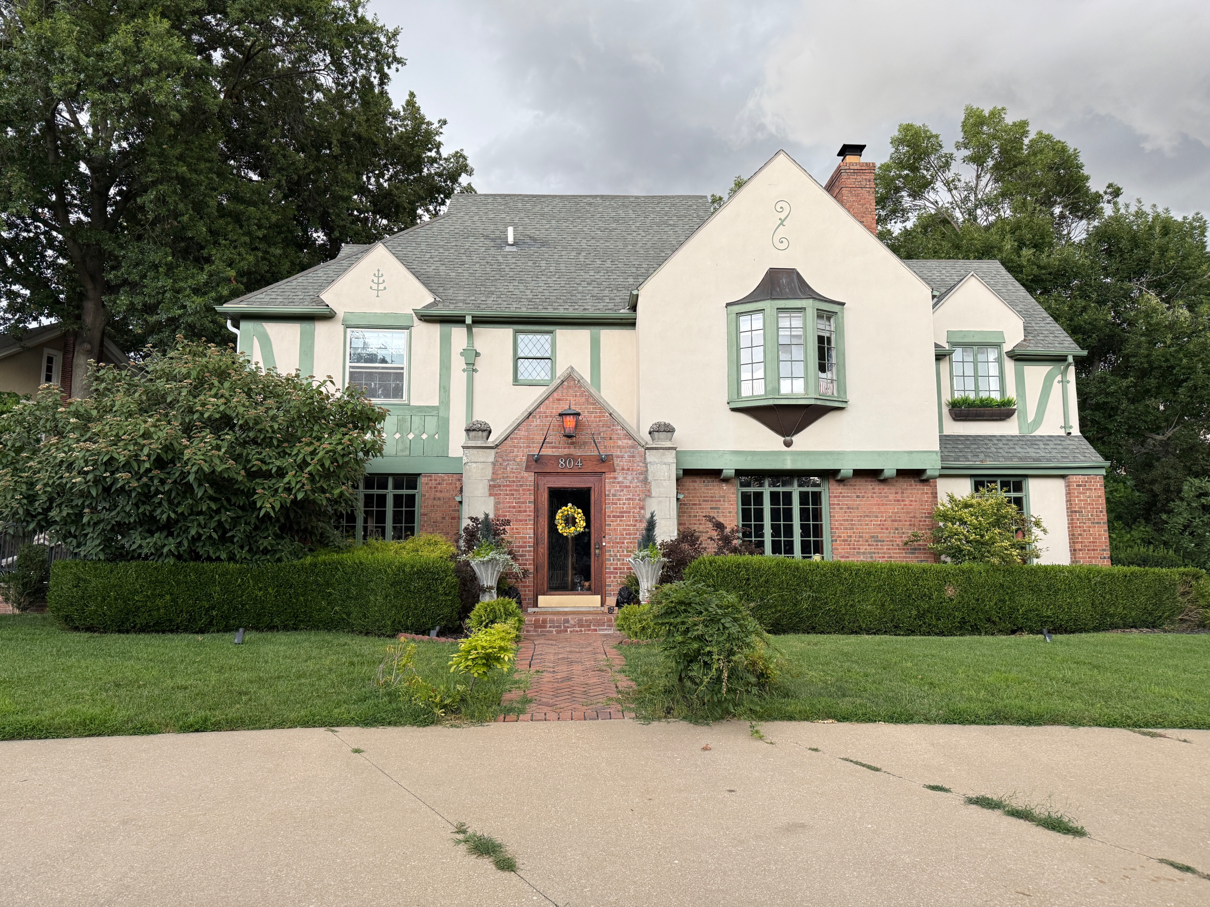a manicured lawn trim shrubs and trees manicured pathway flower in flower boxes weeded driveway