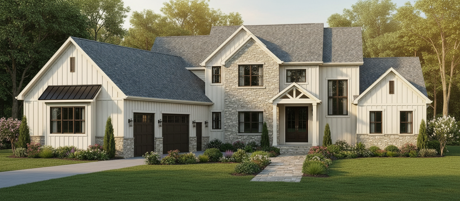 can you add a sky pencil tree on the very left corner of the home by the window then boxwood bushes maiden grass and salvia plants around the front of the home