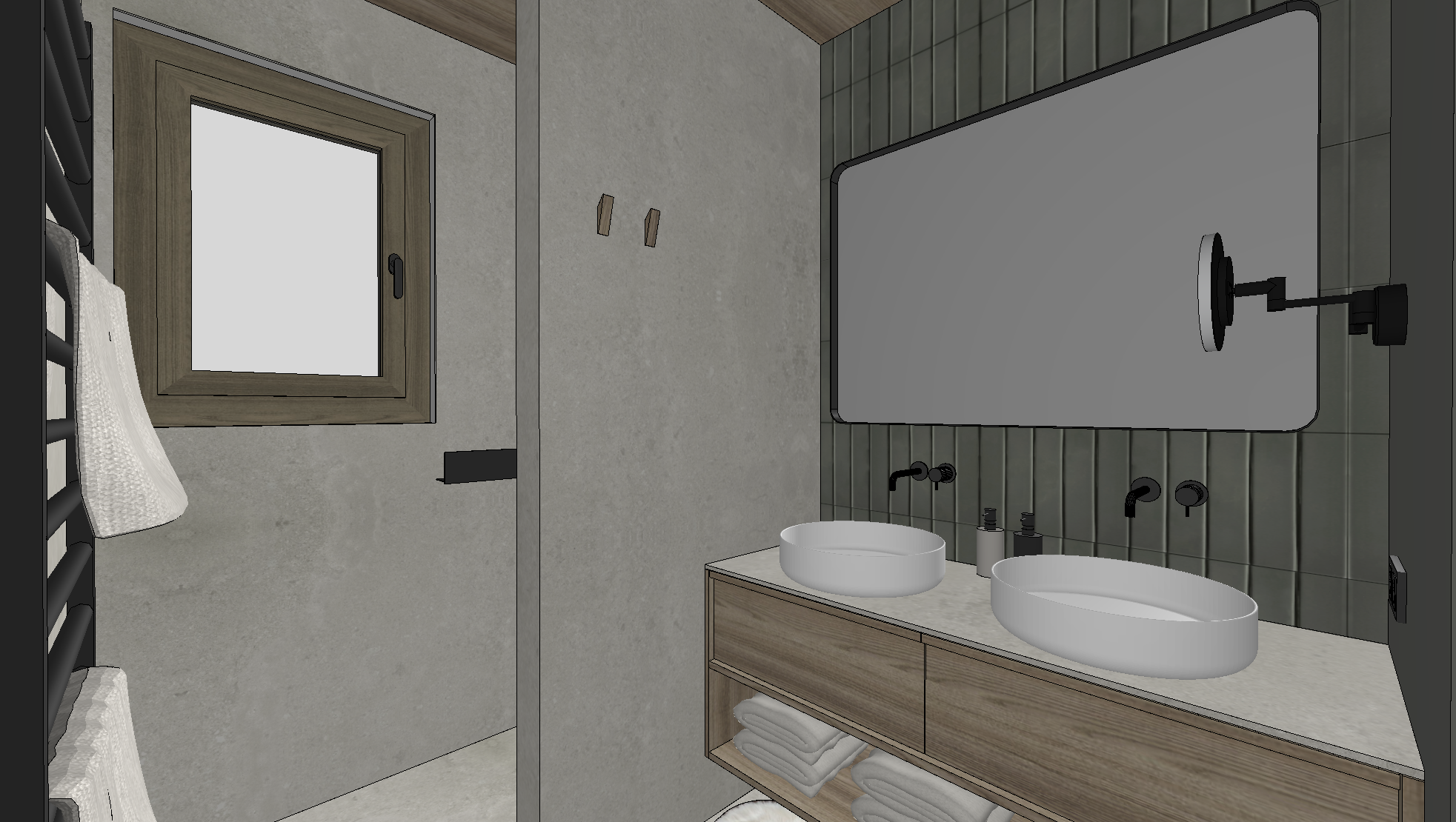 badezimmer warme lichtstimmung gr ne stabfliesen spiegelnd handtuchheizk rper in spiegel spiegeln