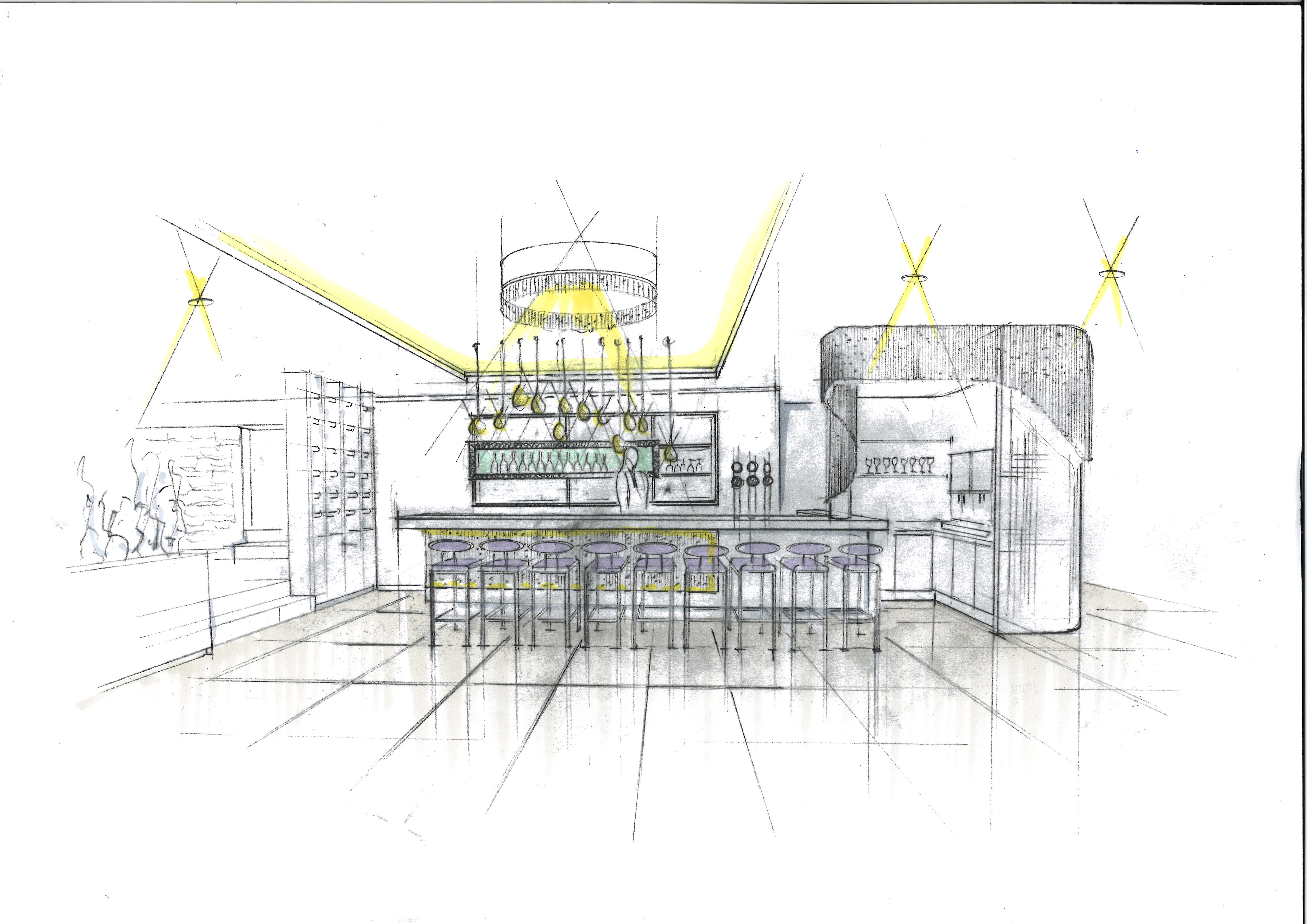 hotel bar in modern style light colors beige walnut wood evening atmosphere
