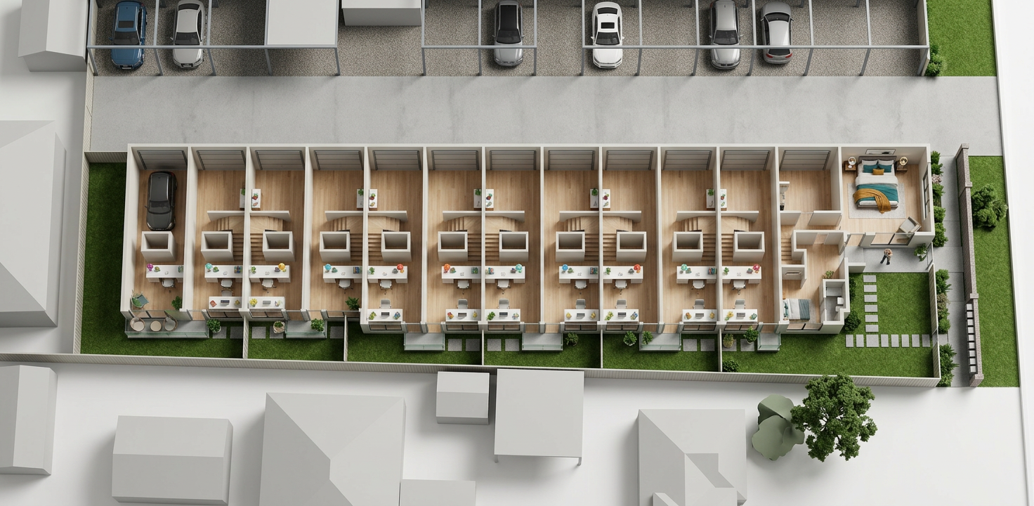 minimalist dark brown simple etheral interior in charlotte taylor style dramatic light keep wooden colorful table design add a few minimalists wooden chair make the image vertical add one person dancing on the table
