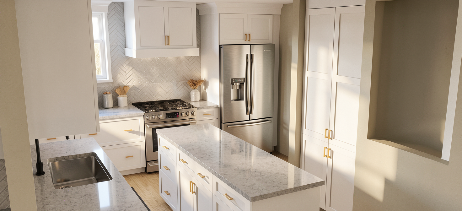 add a light ceiling with two coves add a light green floral wallcovering with wall paneling make the windows a light wood with a lush gold course in the back add very light white drapes make the floor a light wood herringbone with a border