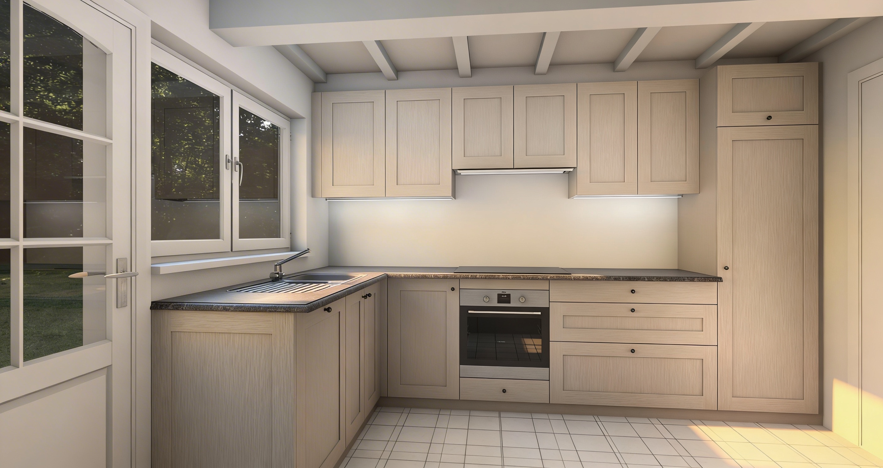 additional down light on ceiling morning sunlight from left