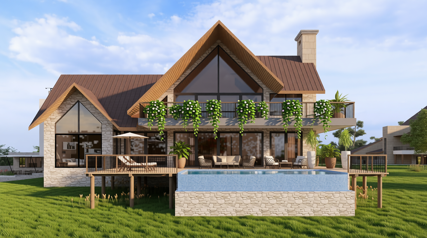 evening setting sun view over the red sea enhance the olive trees and lavender plants to make them look more realistic and only use lavender inside the olive bosque planters make the people look more realistic add some people sitting on the barstools add a waiter serving food and drinks in the scene add moroccan lamps in the olive trees add some small boats on the sea