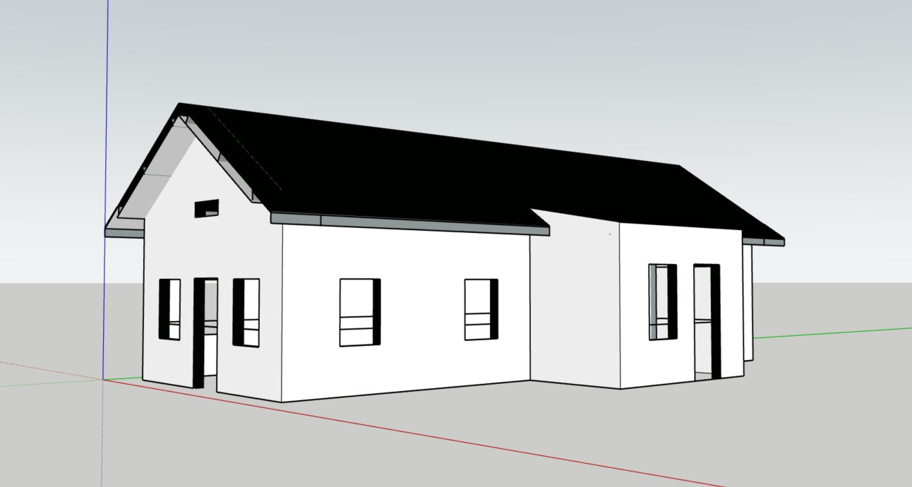 steel cladding on the walls white stell cladding on the roof black put windows in window openings put doors in door opening