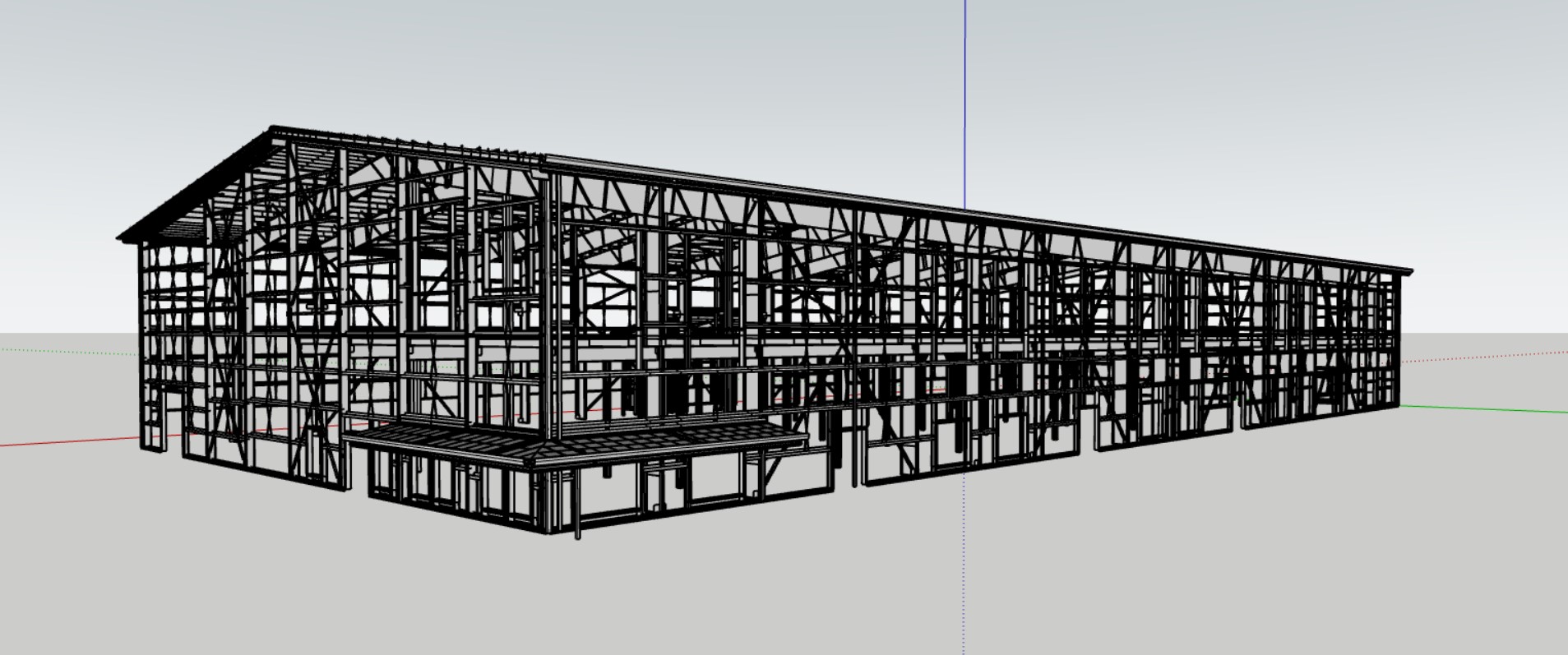 put blue steel panels on walls put black steel panels on roof show all window openings