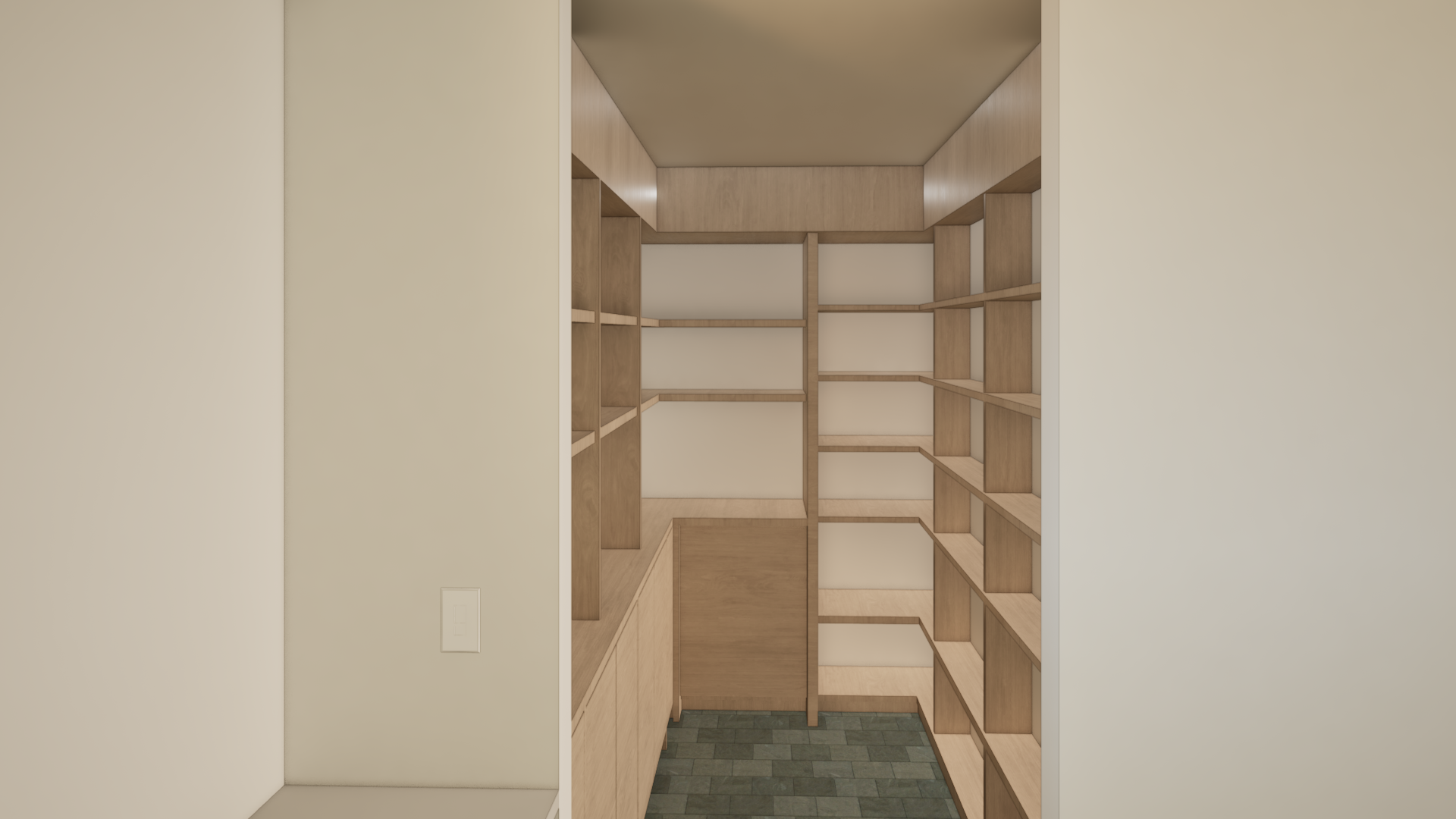 add typical pantry food items to the shelves make it look slightly messy