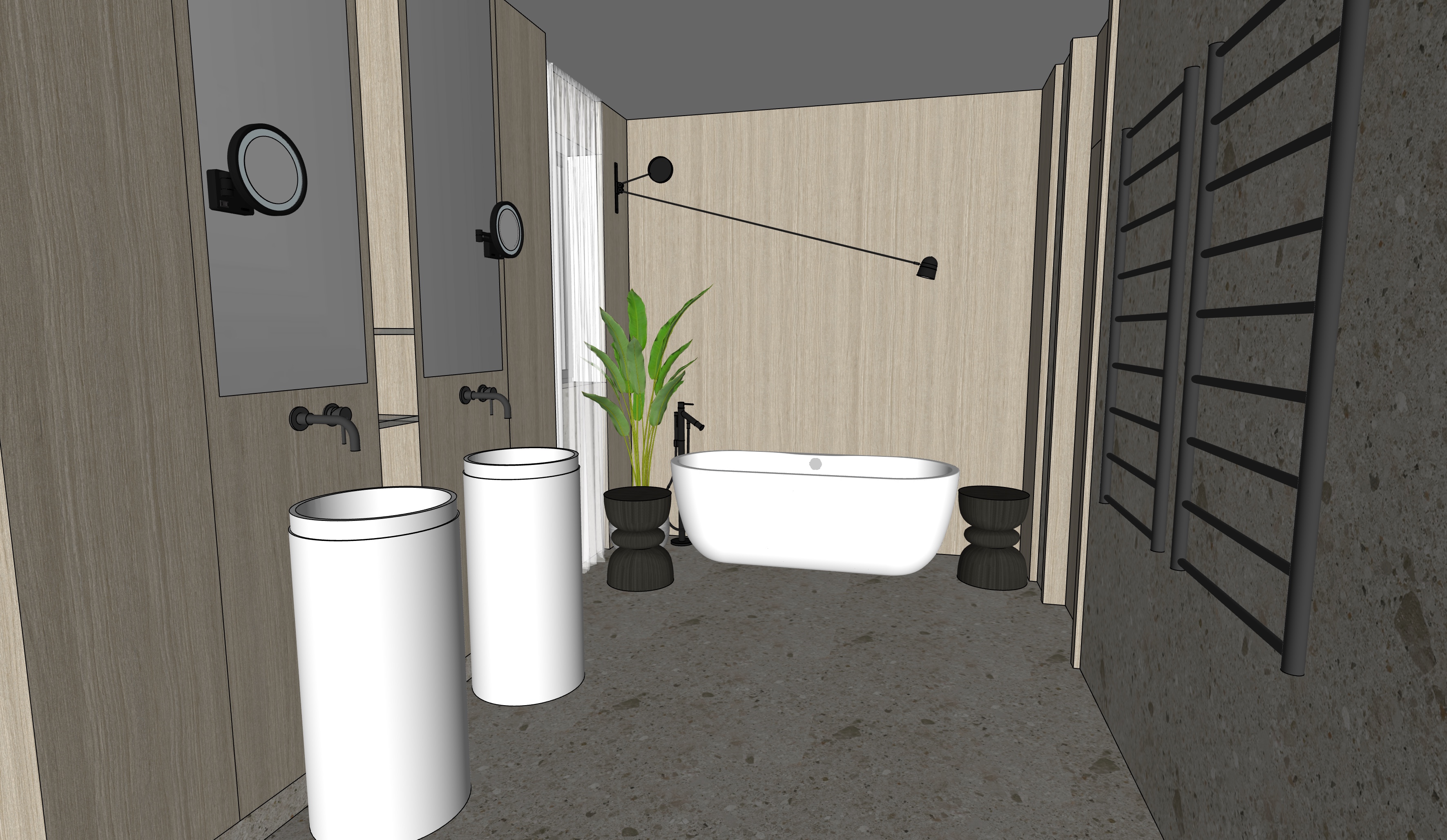 make it summer afternoon in japan outside the window close the curtains but make them translucent turn on the wall light above bathtub k3000 the rectangle shapes on the left make them reflect nothing