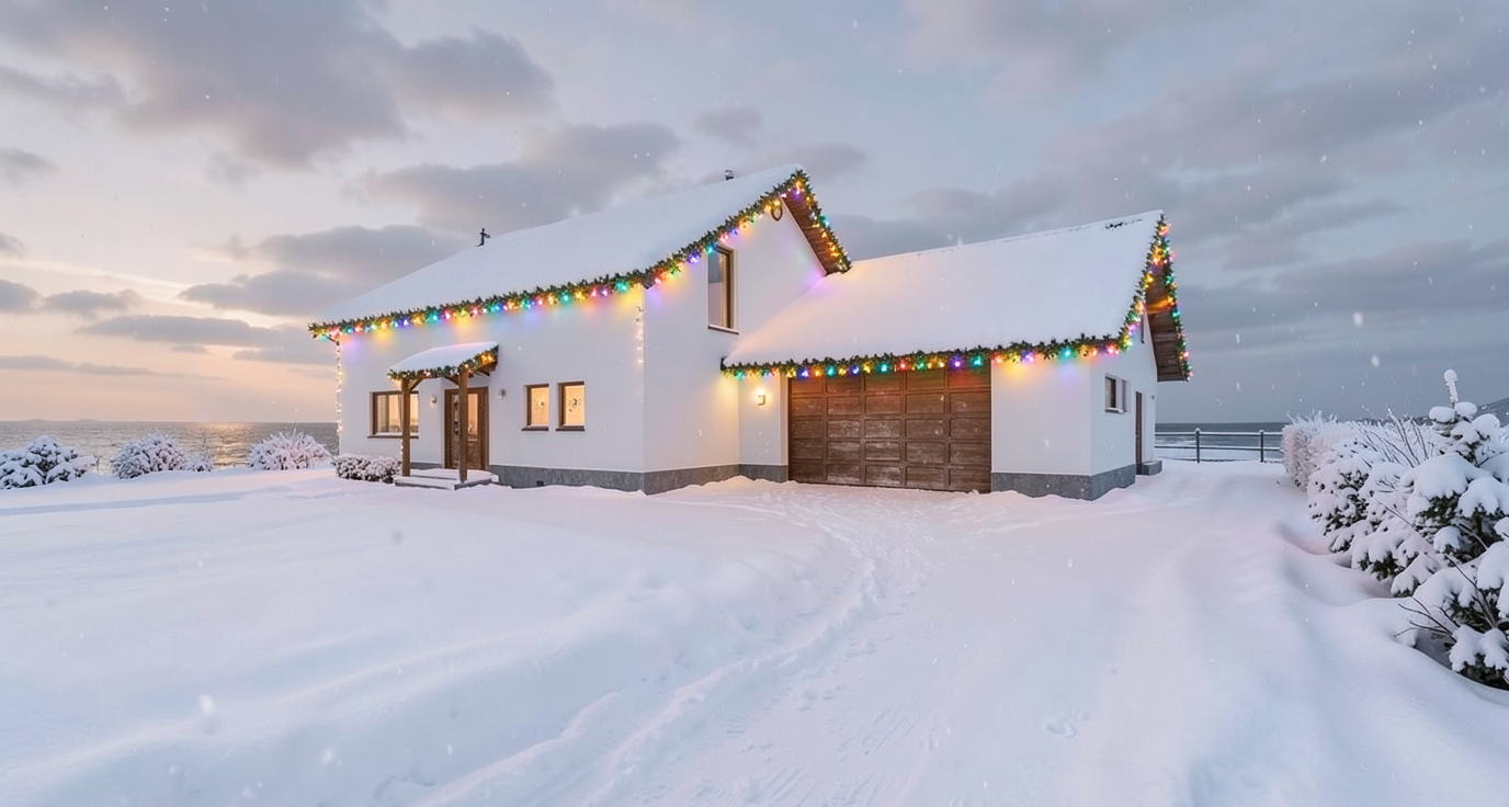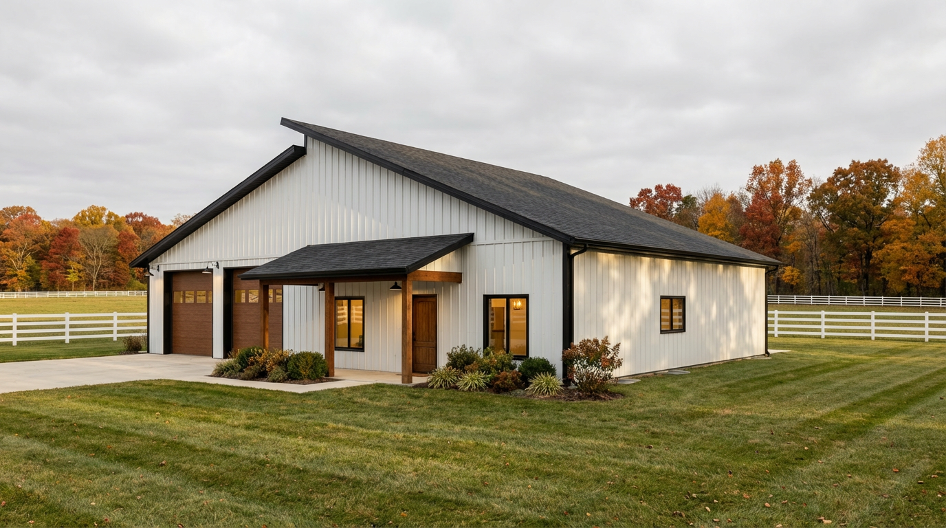 create a vibrant rendering of a modern townhouse with a focus on cozy and inviting aesthetics use a soft earthy color palette with light beige and olive green for the siding and warm cedar brown for the roof and trim incorporate large bright white framed windows to enhance openness add well manicured greenery in lush emerald tones around the base set the mood with a serene golden hour ambiance casting soft warm lighting and gentle shadows across the fa ade a clear blue sky enhances the overall cheerful and welcoming atmosphere