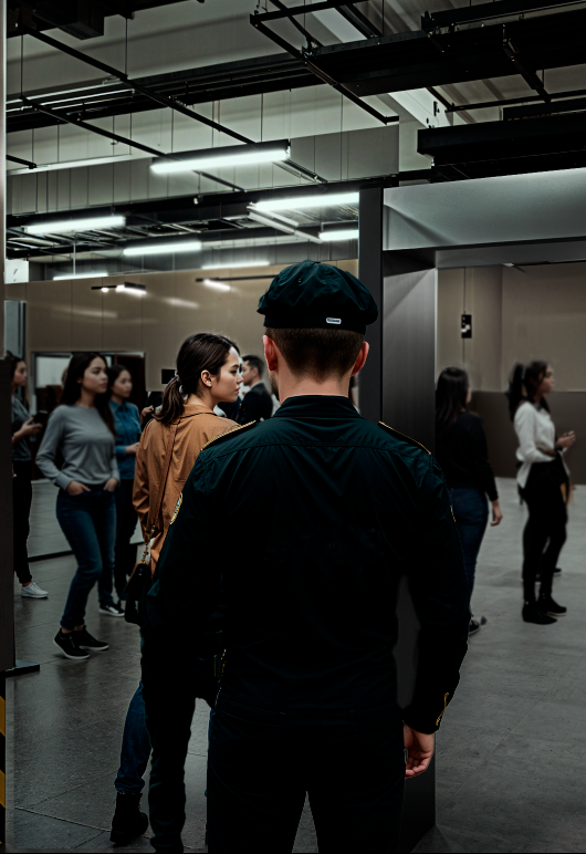 put this policeman looking towards the camera