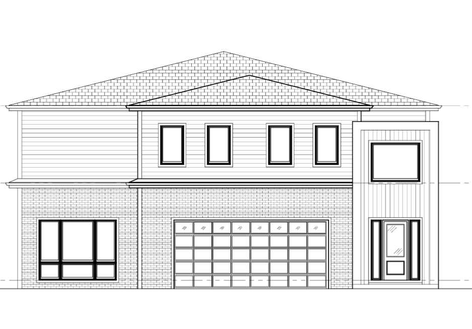 modern look with black roof and overhangs white brick and white horizontal siding wood siding black window trim