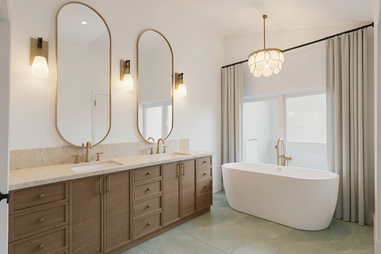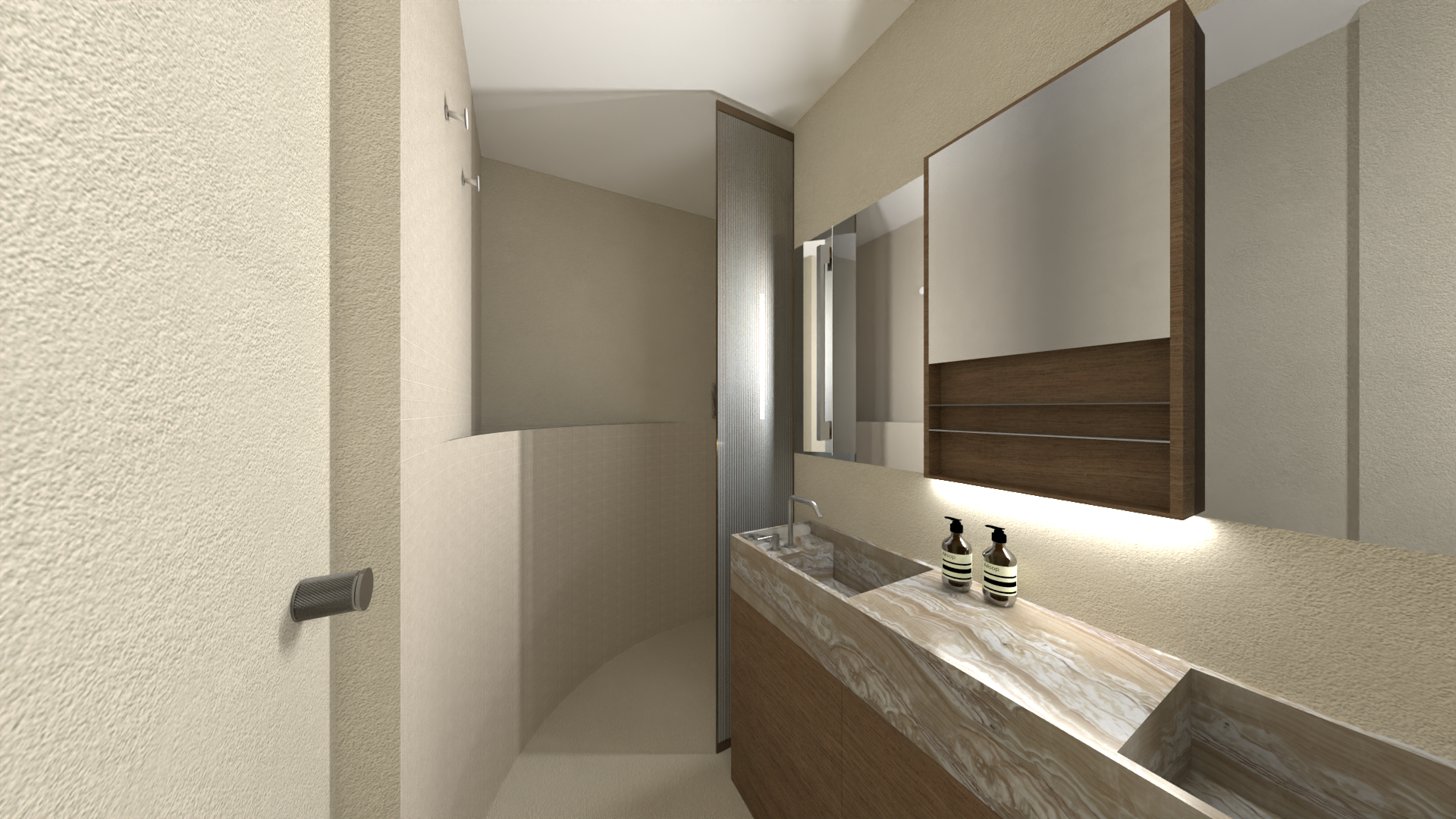 interior shot create a realistic render of the bathroom gentle natural lighting suede walls minimalistic keep the colours intact