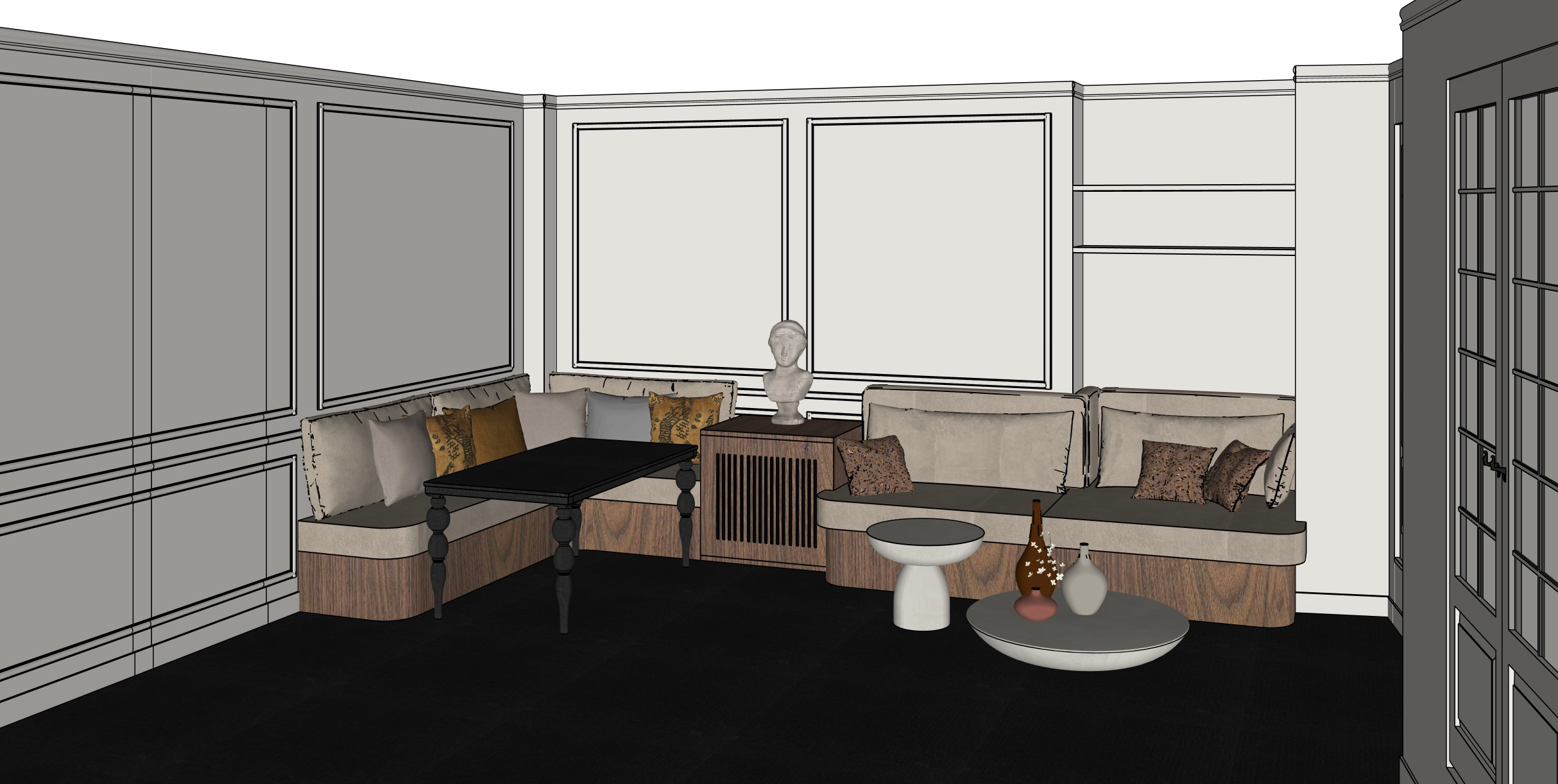 the walls are lightly plastered the apartment is on the 6th floor of a parisian building the lower structure in wood is in walnut the sofa cushions should look like this https fr pinterest com pin 1135118281103360570
