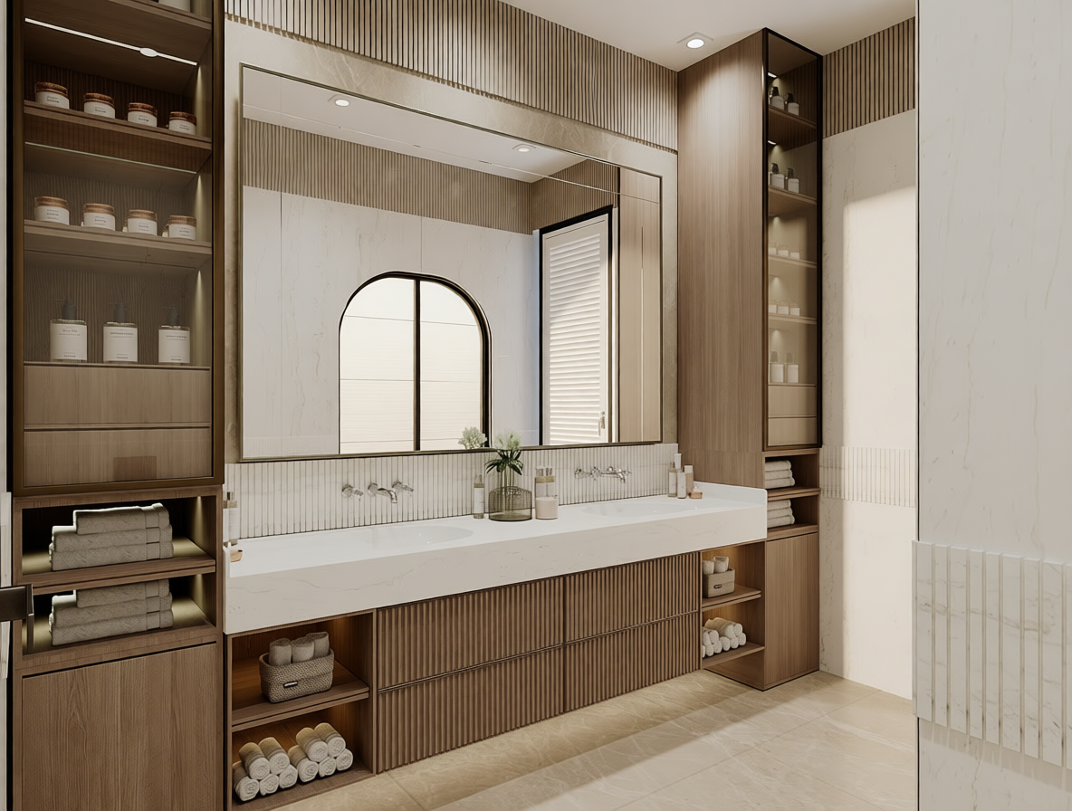 modern conference and training room interior do not change the existing layout geometry proportions walls ceiling windows doors or camera angle preserve the original architectural structure exactly as in the input image apply a contemporary modern style with clean lines and neutral tones light gray and white matte walls acoustic wall panels where visible dark gray or light oak flooring depending on original image modern conference tables and chairs in black and gray tones minimal and professional design integrated linear led lighting soft and realistic illumination no dramatic effects large presentation screen or whiteboard only if already present in the original image photorealistic materials realistic shadows balanced exposure professional corporate atmosphere