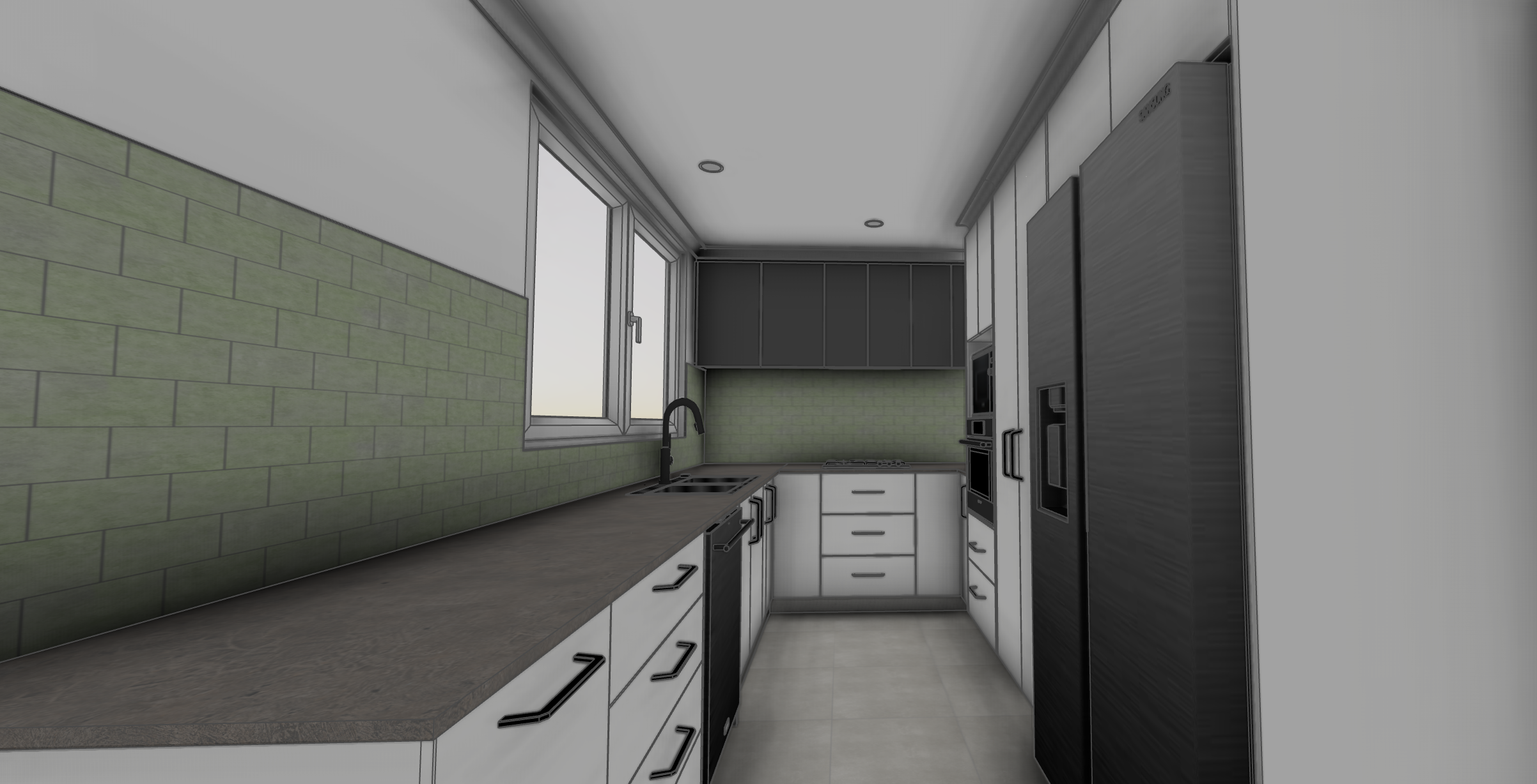 morning house set in residential area downlights 55mm cornice painted white ceiling and walls white under cabinet lighting to upper cabinets cabinet doors without profile