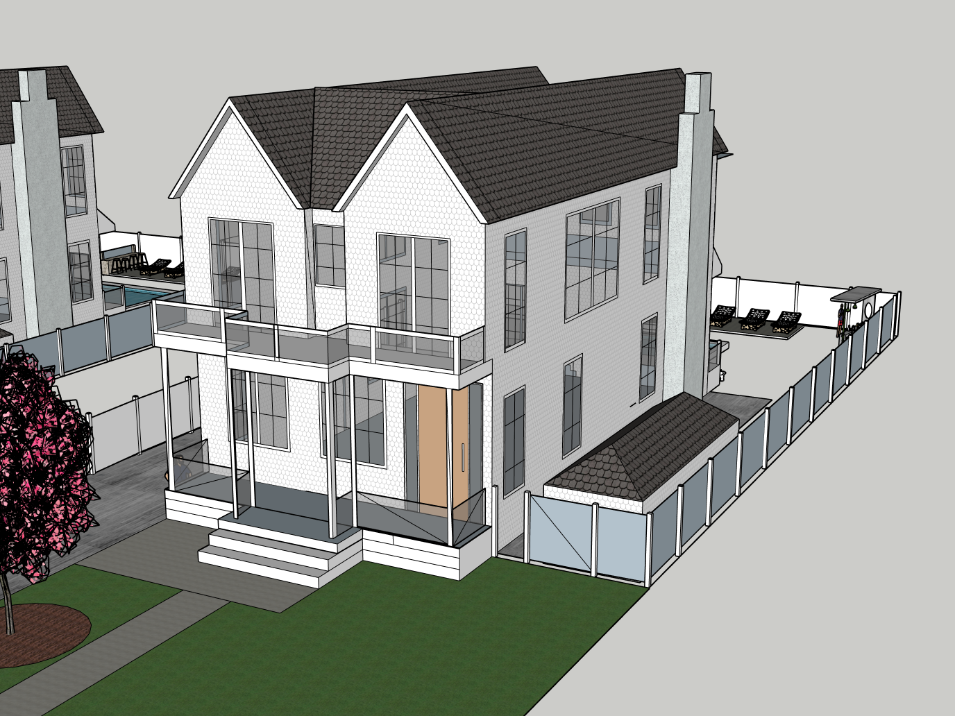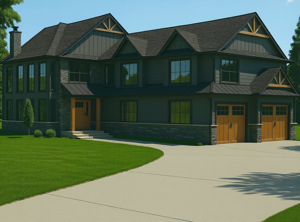 dark shake siding white windows