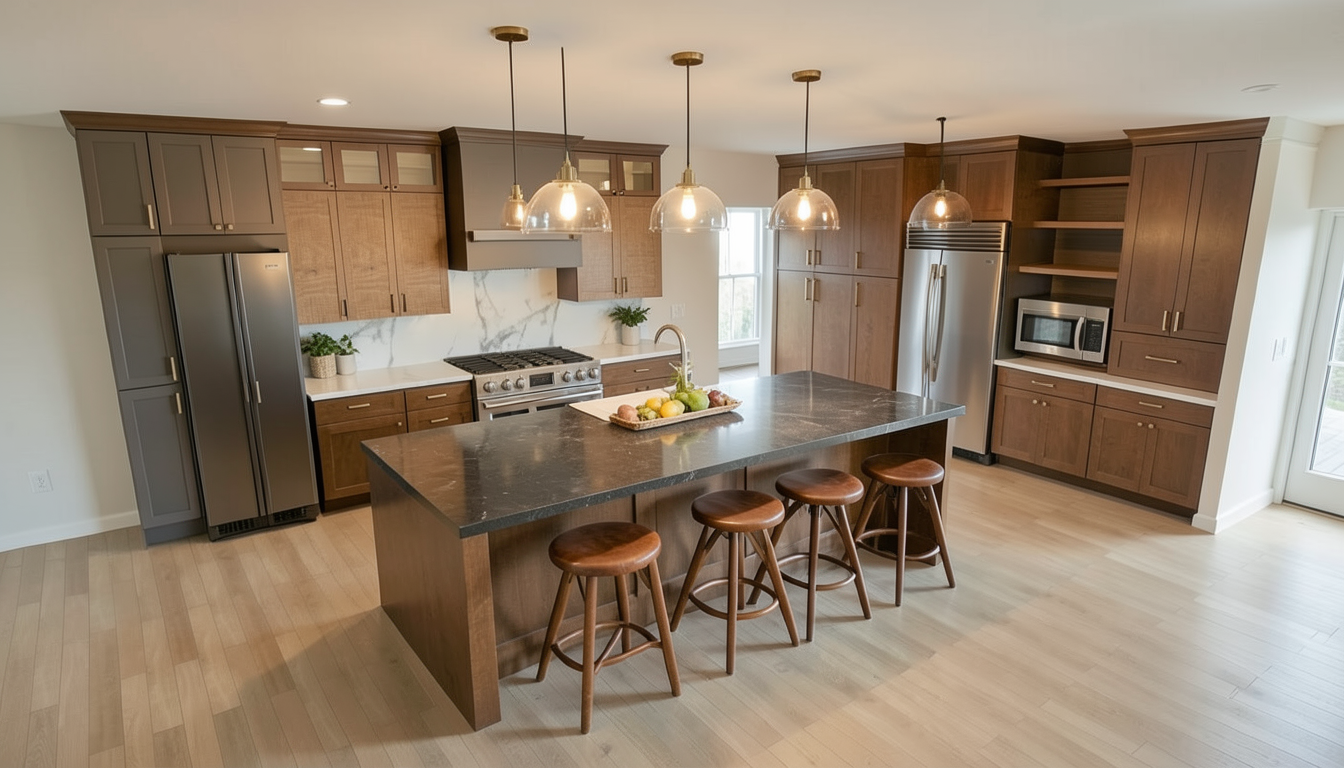 you are given an existing black and white architectural floor plan image absolute rules do not violate do not change the layout in any way do not move resize add or remove walls doors windows stairs or rooms do not alter dimensions scale or proportions do not move resize add or remove any furniture treat the plan as architecturally locked and construction accurate any geometric change is a failure your task keep the floor plan exactly the same only enhance the visual appearance using color materials and subtle styling flooring light natural oak wood flooring in all living areas bedrooms kitchen dining halls and closets light gray tile in all bathrooms smooth gray concrete in garage front porch flat matte finish only no patterns no gloss no dramatic contrast furniture keep all furniture exactly where it is do not change furniture shapes sizes or locations apply a west elm crate barrel aesthetic for aestetics and furniture central texas vibe kitchen baths show only the following appliances sink range refrigerator do not show a dishwasher no icon no placeholder no suggestion of location kitchen and bathroom countertops white or off white quartz subtle marble style veining clean premium understated text labels remove all text room names labels dimensions arrows notes symbols style output top down flat architectural view only no perspective no elevations no 3d effects clean consistent line weights very subtle depth only no shadows that imply height pure white background high end residential marketing quality calm polished brochure ready final check mandatory the finished plan must be dimensionally identical to the original only materials finishes and color should change