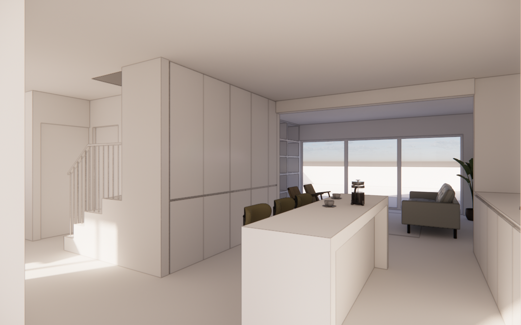 modern cool scandi interior with oak floors garden with timber fencing and modern grasses and a maple tree to the rear