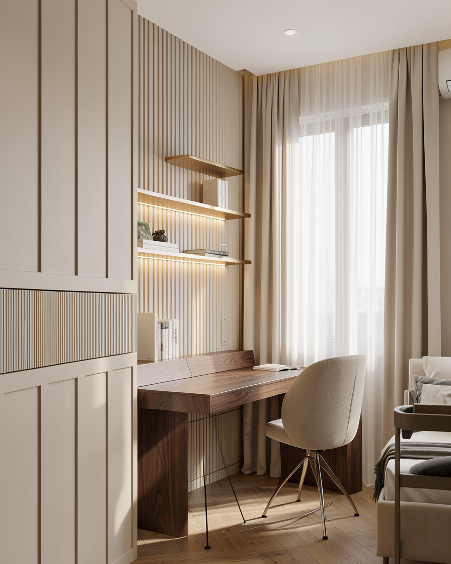 can you please render this image into a contemporary architectural pod with a unified aerospace inspired material language side facades feature a dramatic textured surface that abstractly reflects wind flow and aerodynamic patterns the texture feels lightweight engineered and fluid the front facade is composed of clear high performance glass curtain walls with minimal mullions the remaining surfaces use a sleek lightweight material inspired by aerospace engineering architecture