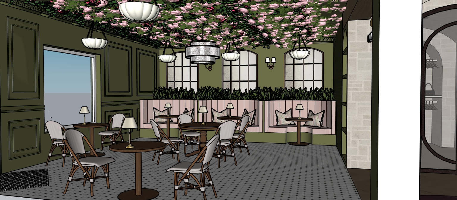 keep the colors shapes and textures the same the mirors on the back wall should be antique looking the ceiling is covered in real flowers turn on the light fixtures and make it a bright yet moody ambiance