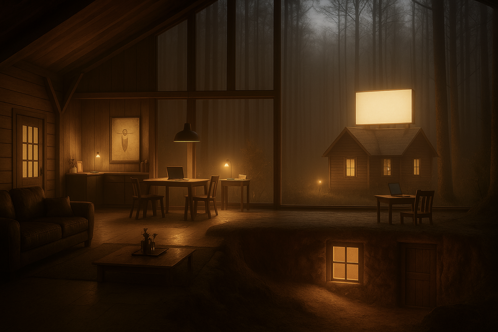 exterior shot less wood in the walls more books in the bookshelves no ceiling