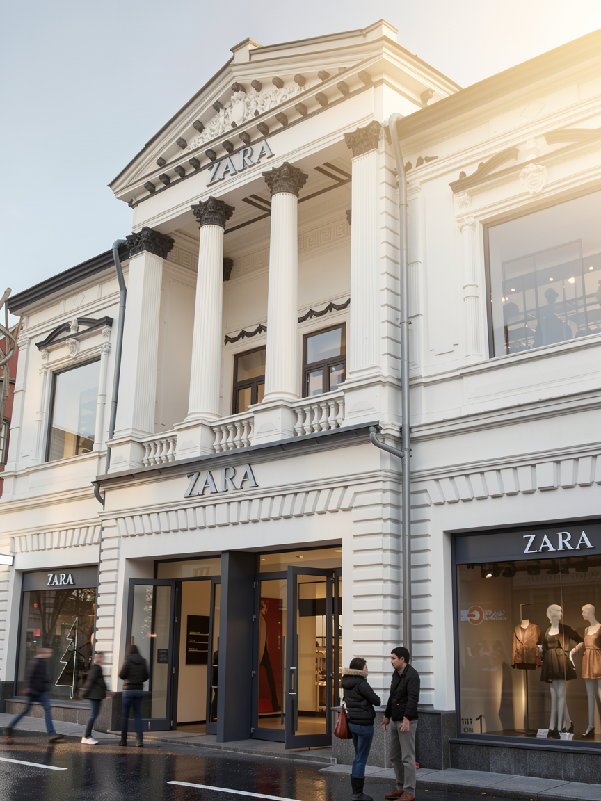 important preserve the existing geometry and the existing context exactly as provided preserve the existing windows do not add new windows do not modify alter reinterpret add remove scale or reshape any geometry do not change the site surroundings street layout neighboring buildings vegetation or context elements do not modify geometry scale proportions buildings road layout sidewalks or surrounding context in any way do not modify text soft overcast sky noon atmosphere diffused neutral natural daylight with subtle grey tones cinematic architectural mood weak interior lighting 4000k slight glowing from inside large glass surfaces with realistic reflections soft mirror effect environmental reflections of sky and surroundings important do not add new windows do not modify text do not add objects inside the building keep the original light inside the window