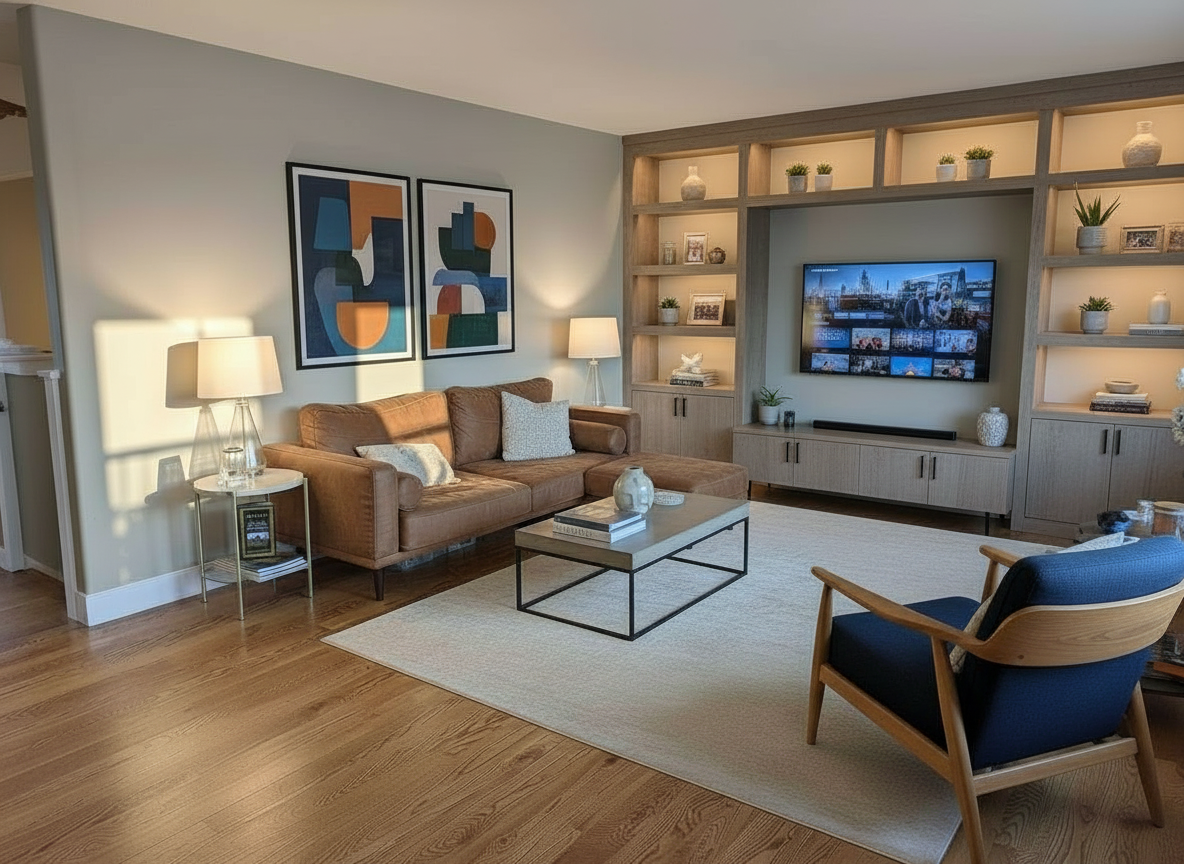 modern interior shot keep everything exactly how it is only change behind the television can you add an accent color or wallpaper behind the television space only architecture