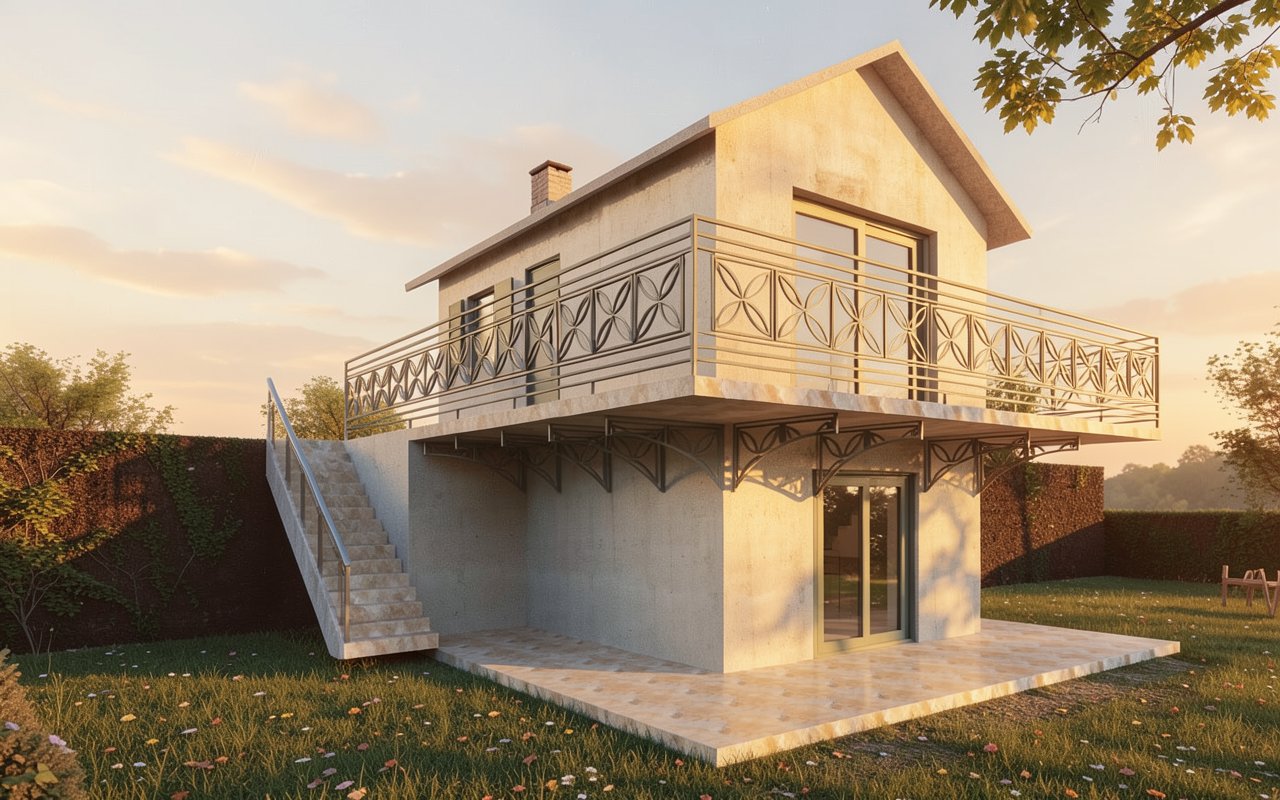 add a few people make grass shorter finish the path along the side of the house in line with the end of the deck